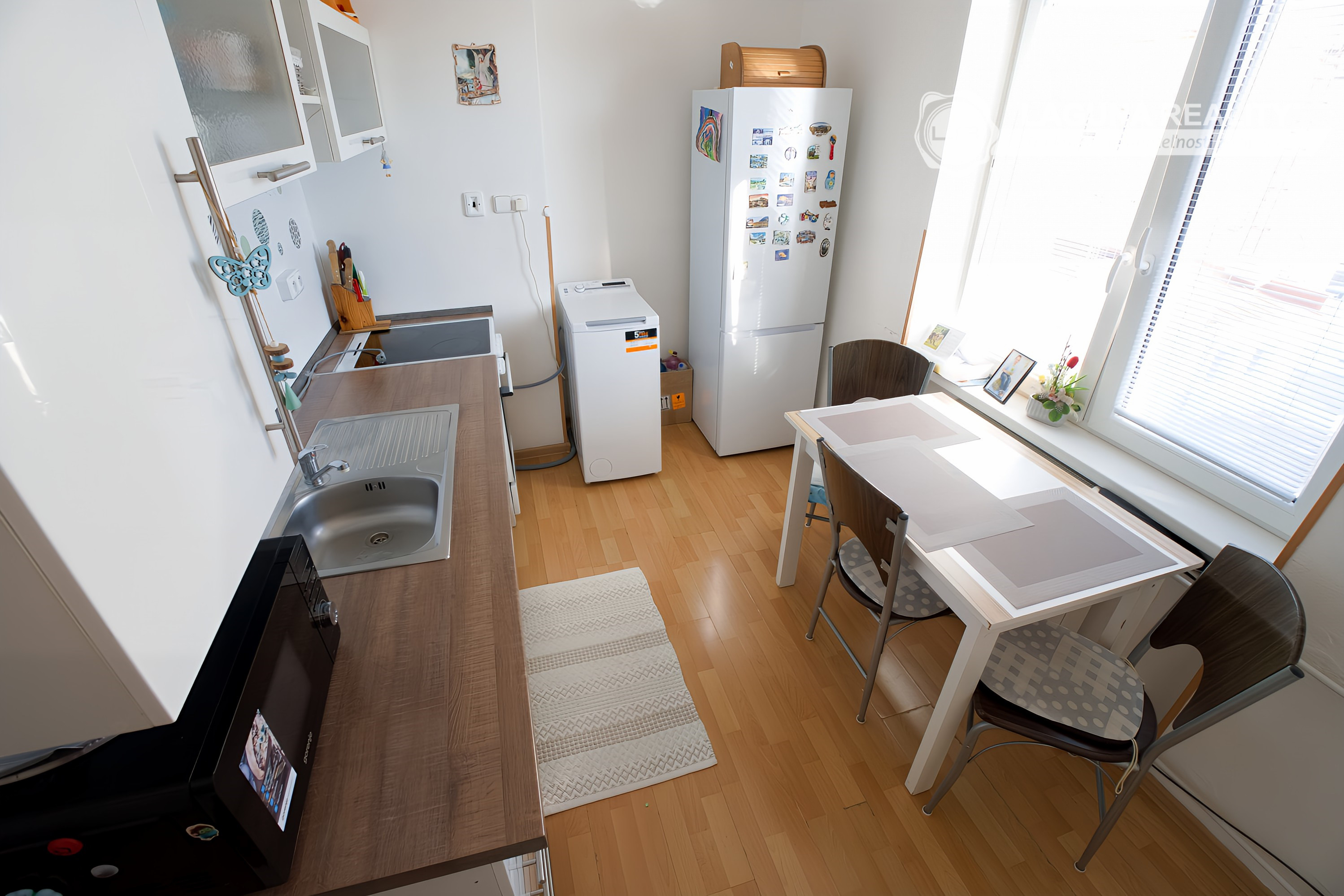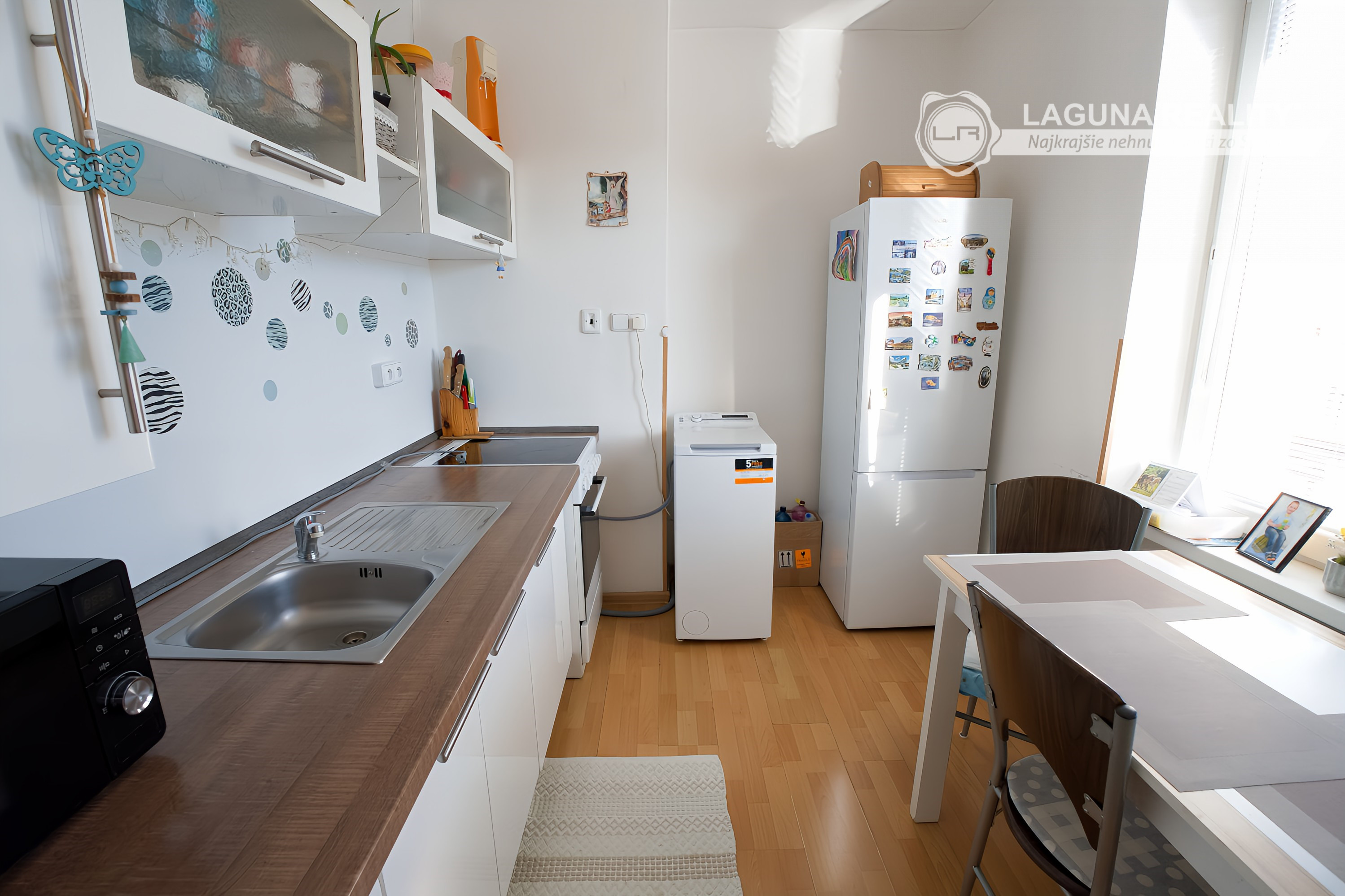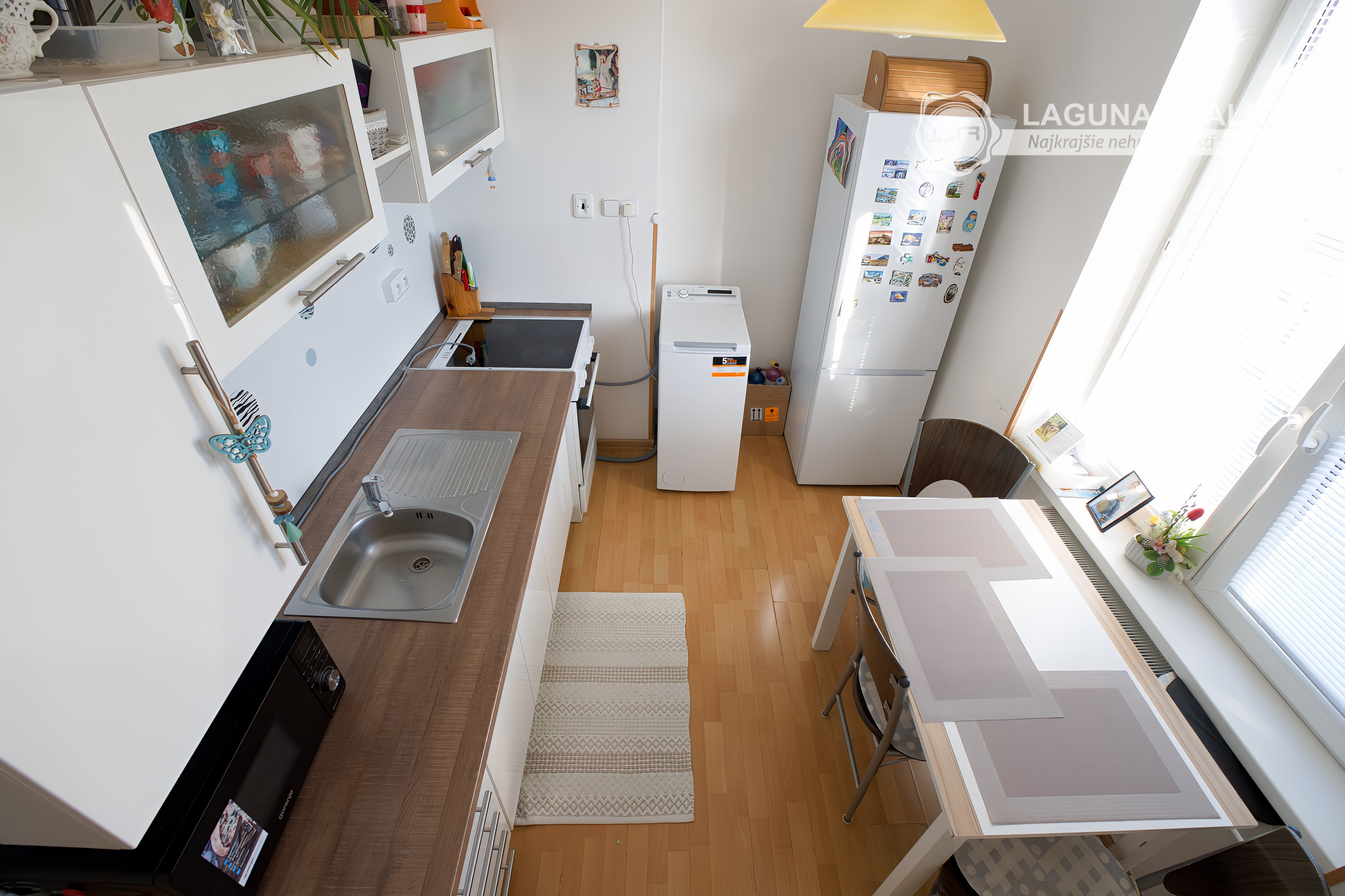 Byt je čiastočne rekonštruovaný -plastové okná so žalúziami, podlaha plávajúca laminátová. Kuchynská linka je vybavená spotrebičmi - elektrický sporák s el. rúrou, nerezový drez.