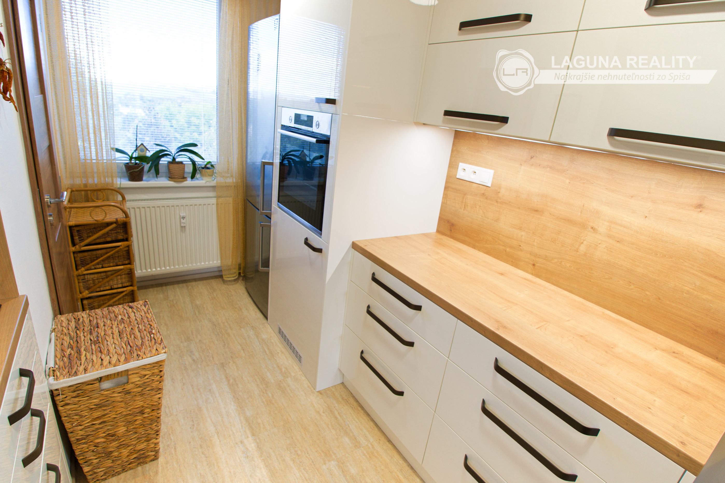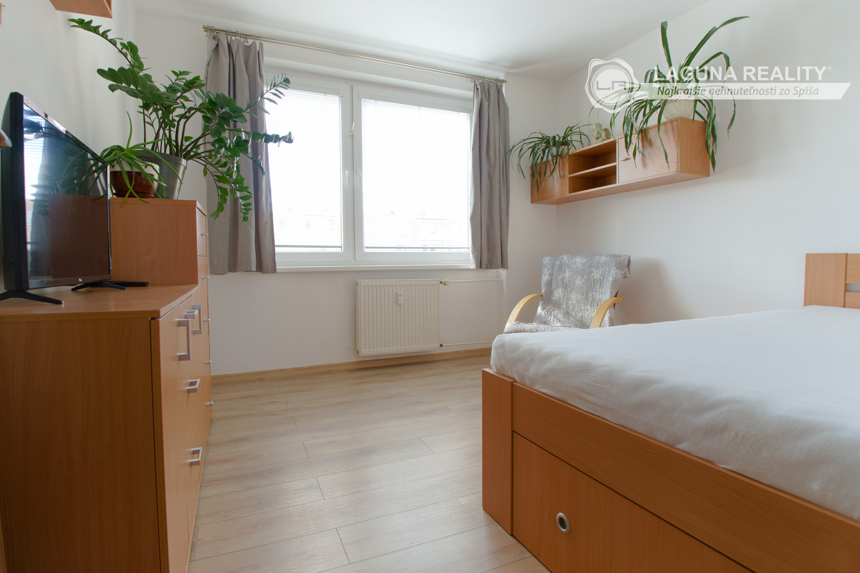 Byt pozostáva z chodby s veľkým šatníkom, kuchyne s jedálenskkým kútom, obývacej izby s výstupom na loggiu, spálne, detskej izby, kúpeľne s vaňou a samostatného WC. Byt je KOMPLETNE REKONŠTRUOVANÝ (2020) - má murované jadro, plastové okná so žalúziami, plávajúce podlahy, kompletne nové rozvody elektroinštalácie, nové interiérové dvere s obložkami, bezpečnostné vchodové dvere, vinylové podlahy. Kuchynská linka je vybavená - granitový drez, indukčná varná doska, el. rúra, digestor, umývačka riadu, mikrovlnná rúra, kombichladnička s mrazničkou. V kúpelni zostáva práčka so sušičkou.