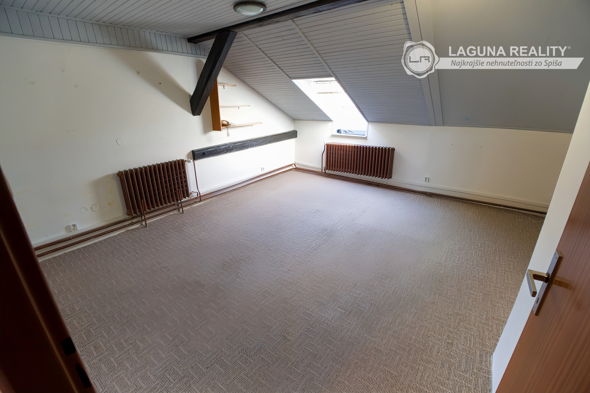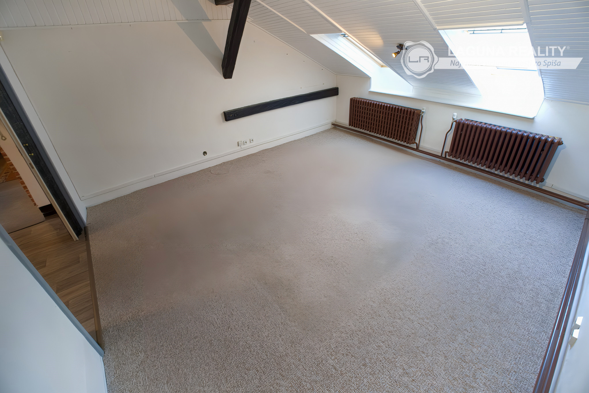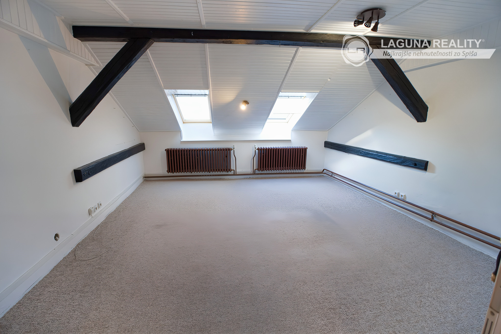 Číslo ponuky: 9070 - Ponúkame NA PRENÁJOM VEĽKÝ PODKROVNÝ BYT S LOGGIOU s celkovou výmerou 135 m2 nachádzajúci sa v blízkosti centra mesta Spišská Nová Ves, ul. Odborárov. Byt sa nachádza na 1.poschodí rekonštruovaného meštianskeho domu so samostatným vstupom so širokým schodiskom. V byte je kuchyňa, jedáleň s výstupom na loggiu orientovanou na východ, veľká obývacia izba, pracovňa, spálňa, kúpelňa, samostatné WC, hospodárska miestnosť, špajza a sklad.
