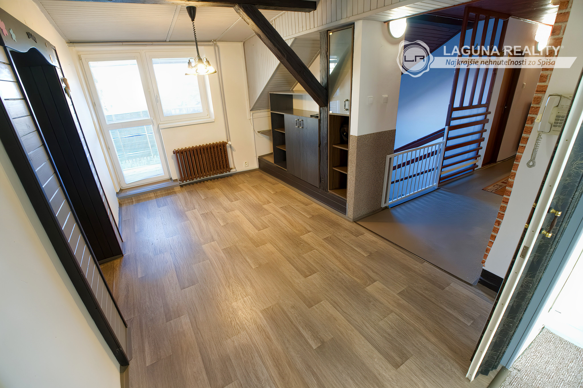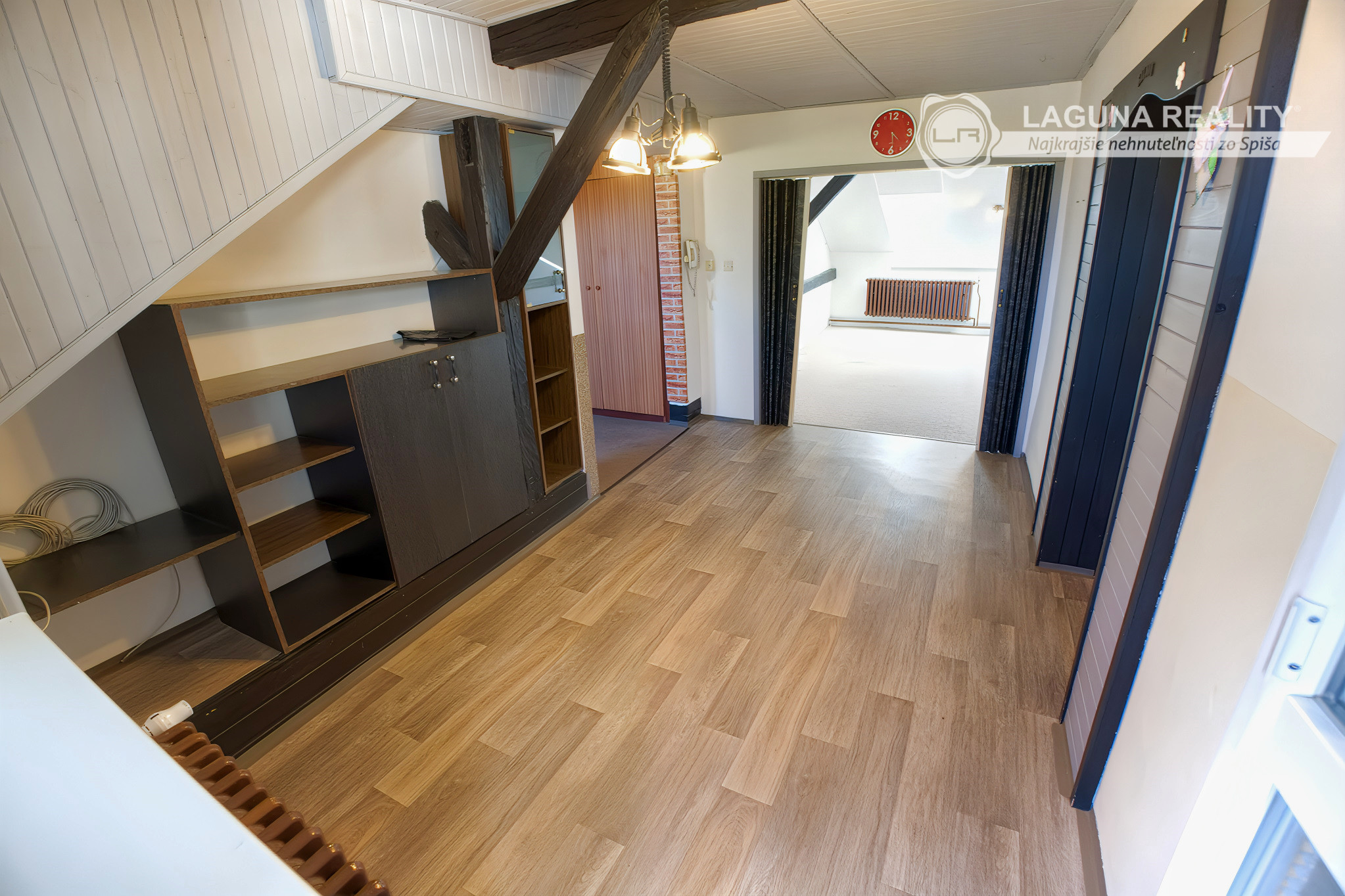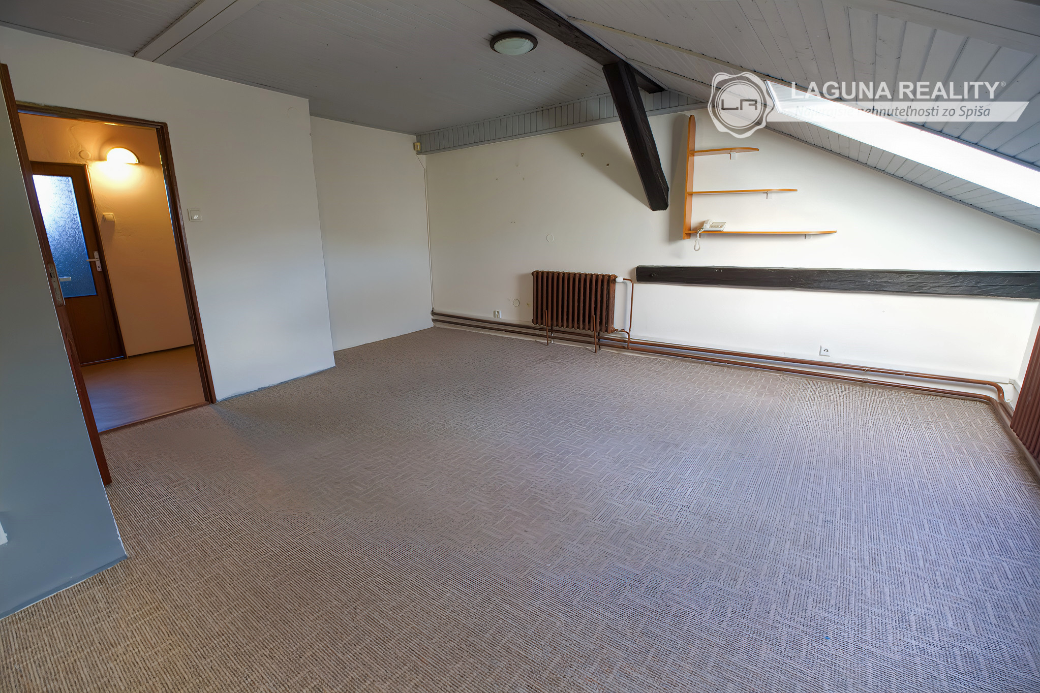 Číslo ponuky: 9070 - Ponúkame NA PRENÁJOM VEĽKÝ PODKROVNÝ BYT S LOGGIOU s celkovou výmerou 135 m2 nachádzajúci sa v blízkosti centra mesta Spišská Nová Ves, ul. Odborárov. Byt sa nachádza na 1.poschodí rekonštruovaného meštianskeho domu so samostatným vstupom so širokým schodiskom. V byte je kuchyňa, jedáleň s výstupom na loggiu orientovanou na východ, veľká obývacia izba, pracovňa, spálňa, kúpelňa, samostatné WC, hospodárska miestnosť, špajza a sklad.