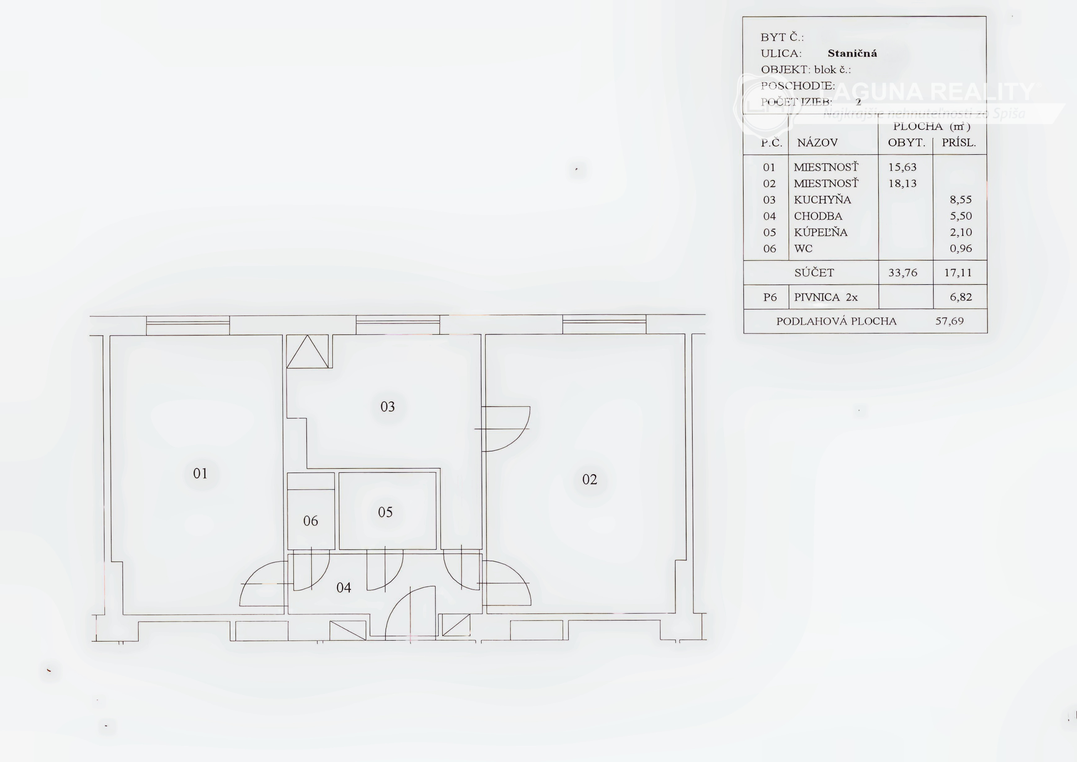 Číslo ponuky: 9077 - Ponúkame EXKLUZÍVNE NA PREDAJ TEHLOVÝ DVOJIZBOVÝ BYT S 2 PIVNICAMI nachádzajúci sa v obci Smižany, ul. Staničná. Byt sa nachádza v UZAVRETOM DVORE s možnosťou BEZPROBLÉMOVÉHO PARKOVANIA s dostatkom VOĽNEJ PLOCHY, ZELENE AKO AJ MOŽNOSŤOU VYUŽÍVANIA MENŠEJ ZÁHRADKY. Byt sa nachádza v TROJPODLAŽNOM BYTOVOM DOME s celkovým počtom 9 BYTOV v jednom vchode. Celková výmera bytu je 58 m2, čistá podlahová plocha bytu je 51 m2, dve pivnice spolu 7 m2.