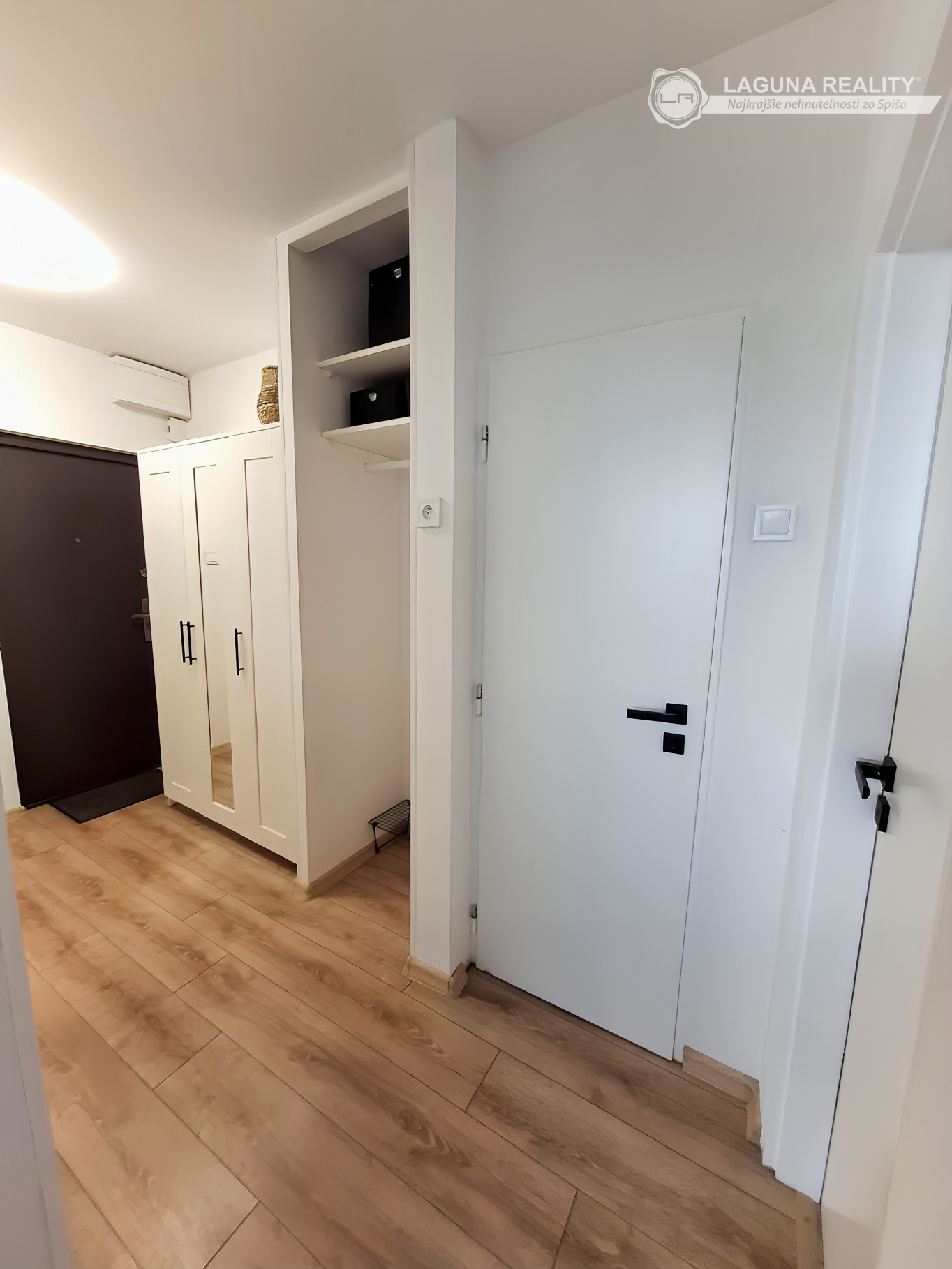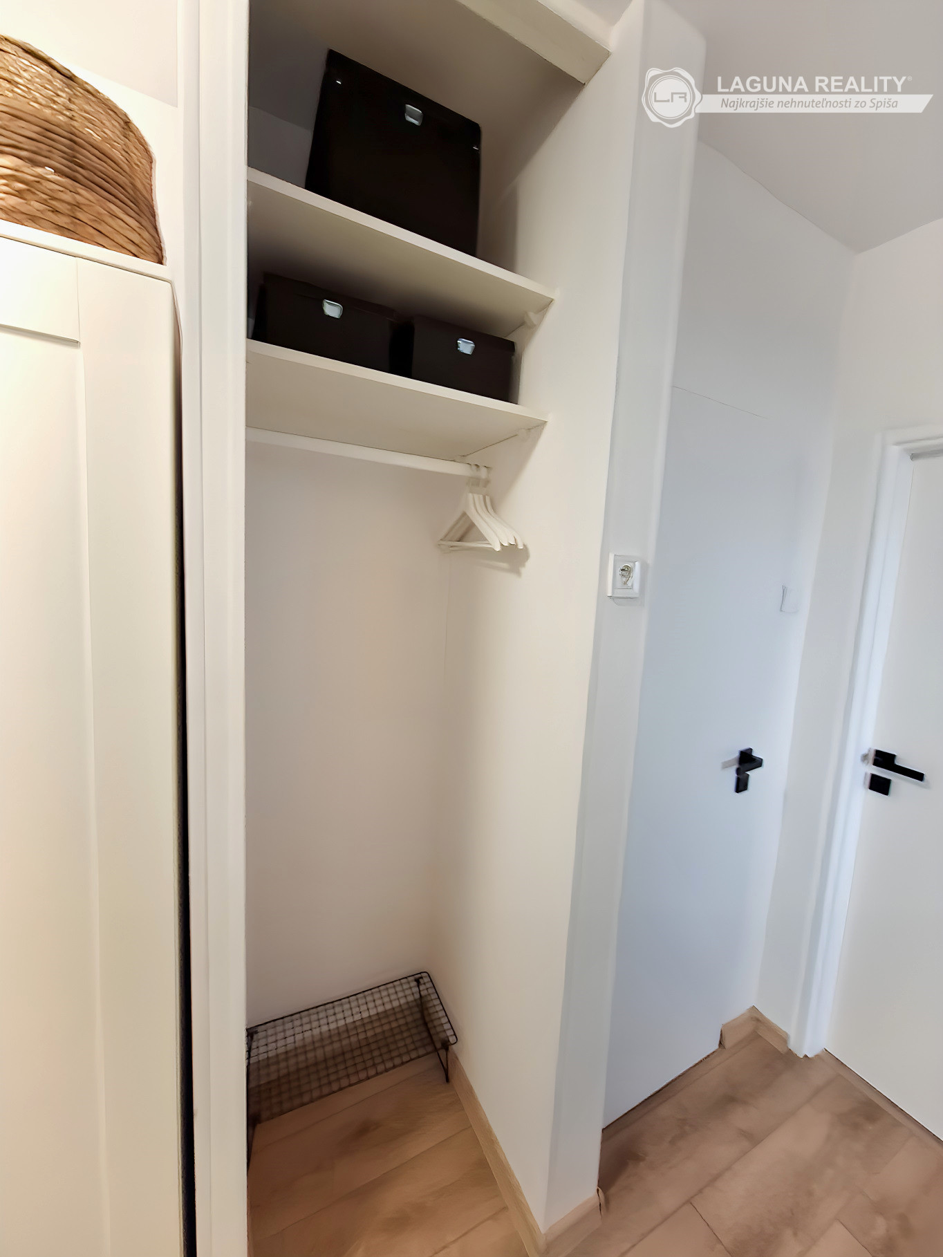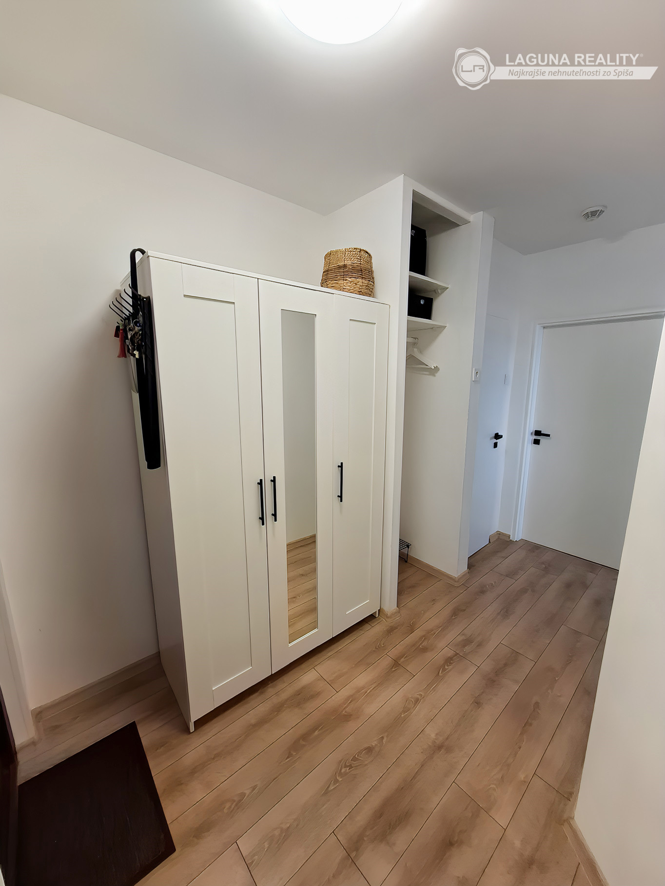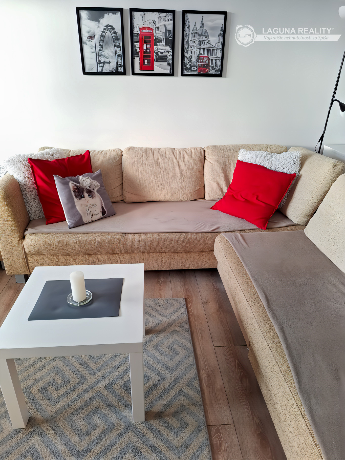 Pozostáva zo vstupnej chodby, troch izieb, kúpeľne a samostatného WC. Z obývacej miestnosti vedie výstup na balkónom s výhľadom na celé mesto Spišská Nová Ves a panorámu Vysokých Tatier a z kuchyne další balkón. Kuchyňa riešená na mieru je vybavená vstavanými spotrebičmi - indukčná varná doska, el. rúra, mikrovlnka, digestor, umývačka riadu, chladnička s mrazničkou. K bytu prislúcha pivnica.