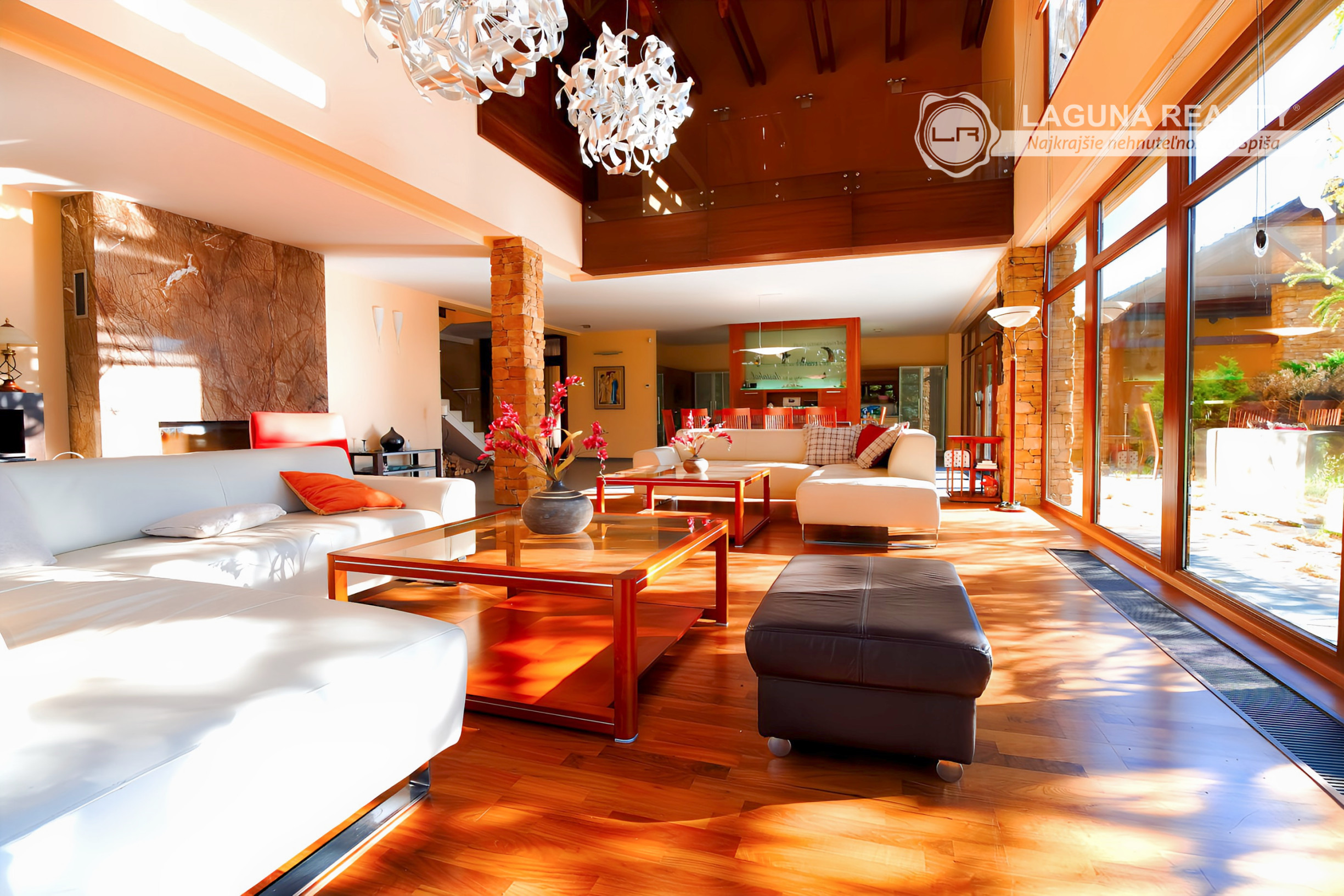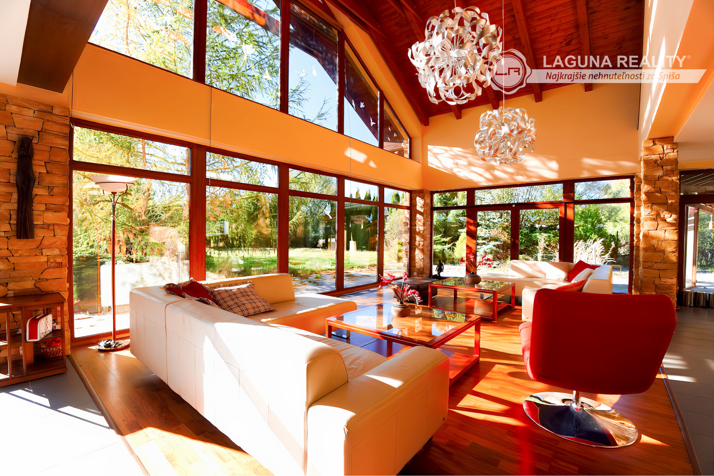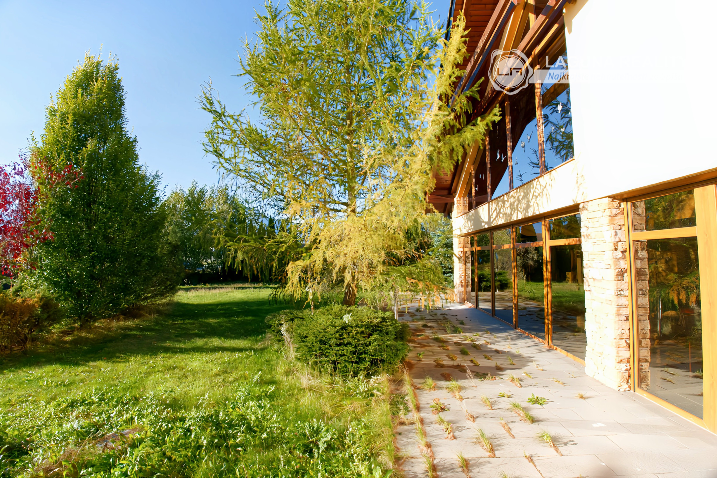RODINNÝ DOM PONÚKA KOMFORTNÉ UBYTOVANIE PRE CELÚ AJ VIACGENERAČNÚ RODINU. Zastavaná plocha domu 336 m2 na dvoch podlažiach poskytuje dostatok miesta pre spoločné priestory (VEĽKÁ OBÝVACIA GALÉRIA S KRBOM - 60 m2), JEDÁLEŇ (33 m2), KUCHYŇA (19 m2) ale aj SÚKROMNÉ ZÓNY v 5 OBYTNÝCH IZBÁCH/APARTMÁNOCH, každá s vlastnou kúpelňou. Dizajnu dominujú VEĽKÉ PRESKLENNÉ PLOCHY A VÝHĽADY NA ZÁHRADU A VYSOKÉ TATRY. Celková úžitková plocha domu bez terasy je 486 m2. TERASA s vonkajším sedením s ALTÁNKOM a krbom má celkovú plochu 246 m2.