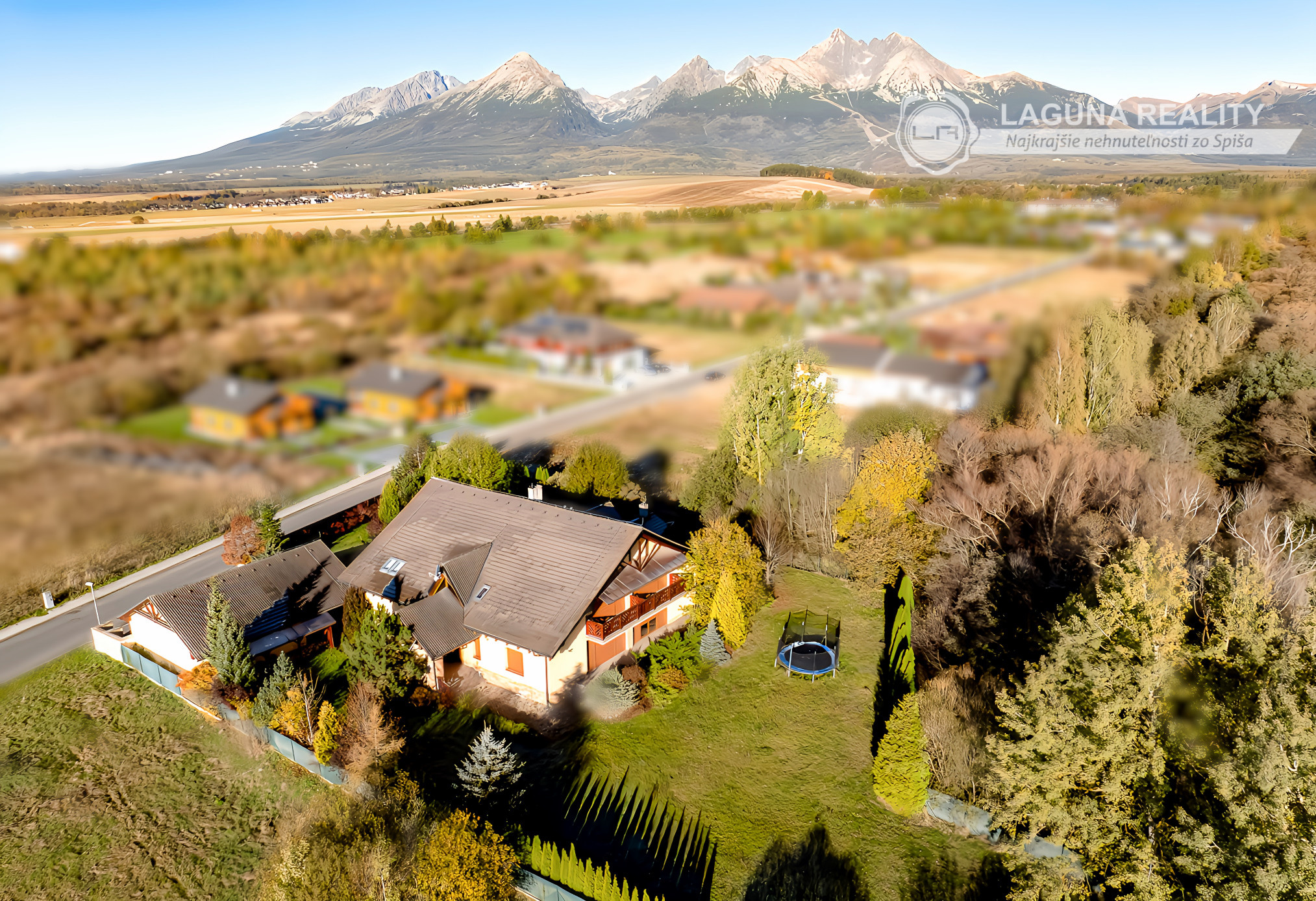 Číslo ponuky: 8781 - Ponúkame na PREDAJ EXKLUZÍVNY RODINNÝ DOM - VILU S ATRAKTÍVNYM VÝHĽADOM NA PANORÁMU VYSOKÝCH TATIER v susedstve GOLFOVÉHO IHRISKA vo Veľkej Lomnici pri Poprade. Dom je situovaný na rovinatom pozemku s celkovou výmerou 2 570 m2 v zástavbe rodinných a rekreačných domov. Obec je vybavená kompletnou občianskou a technickou infraštruktúrou, prístupová cesta je asfaltová. Pozemok je po celom obvode oplotený, VEĽKÁ ZÁHRADA poskytuje ÚPLNÉ SÚKROMIE A POKOJ. Veľká Lomica sa pritom nachádza len 10 minút autom do Popradu, resp. k diaľnici D1, letisko Poprad cca 20 min.