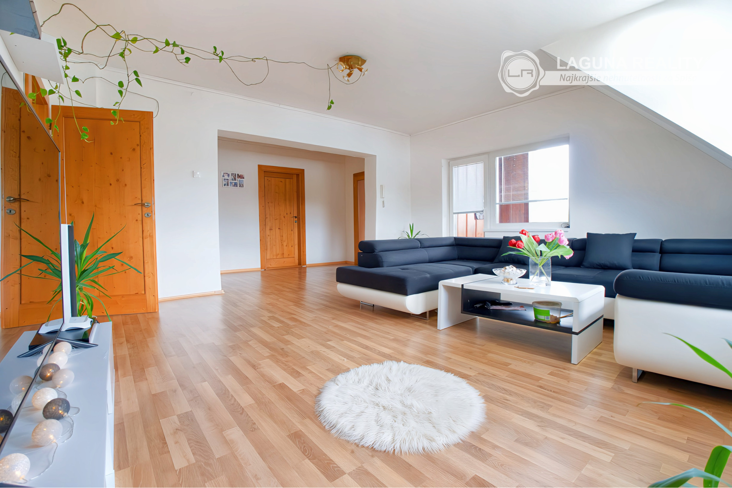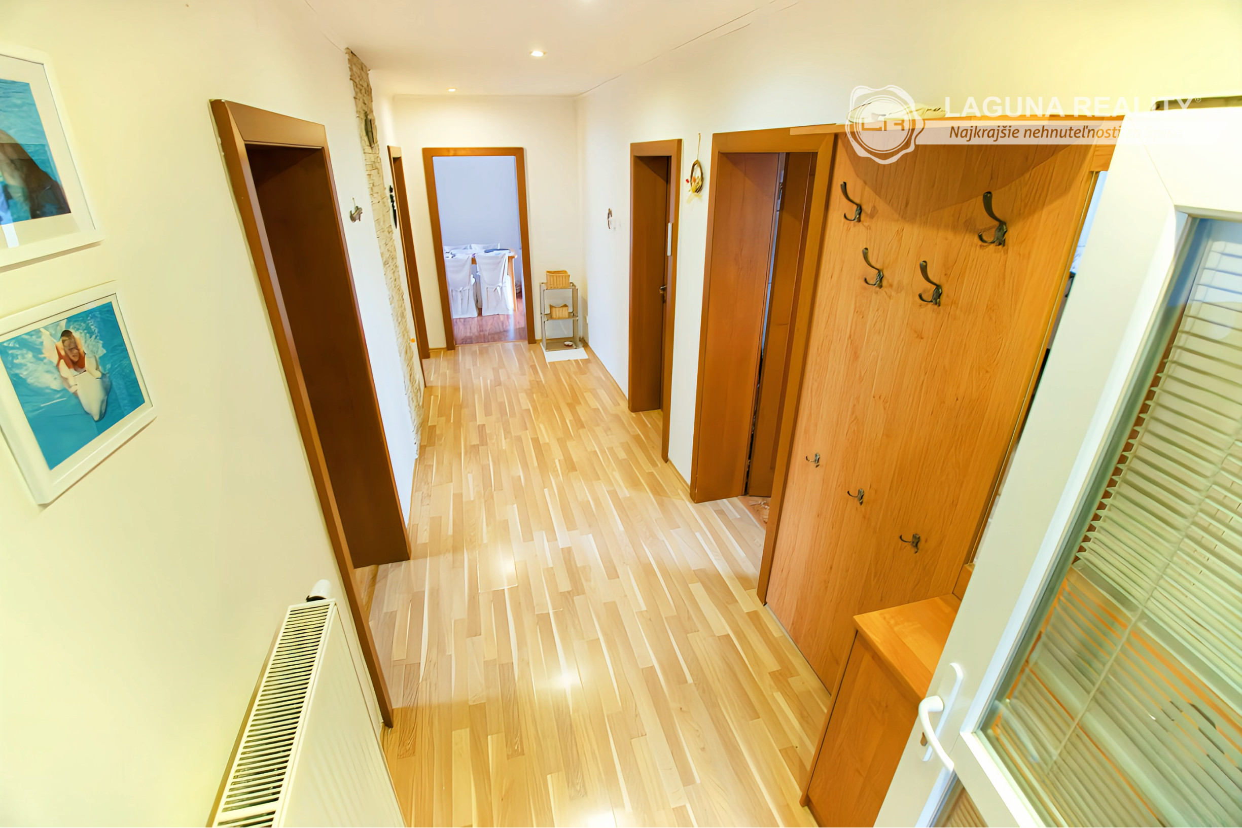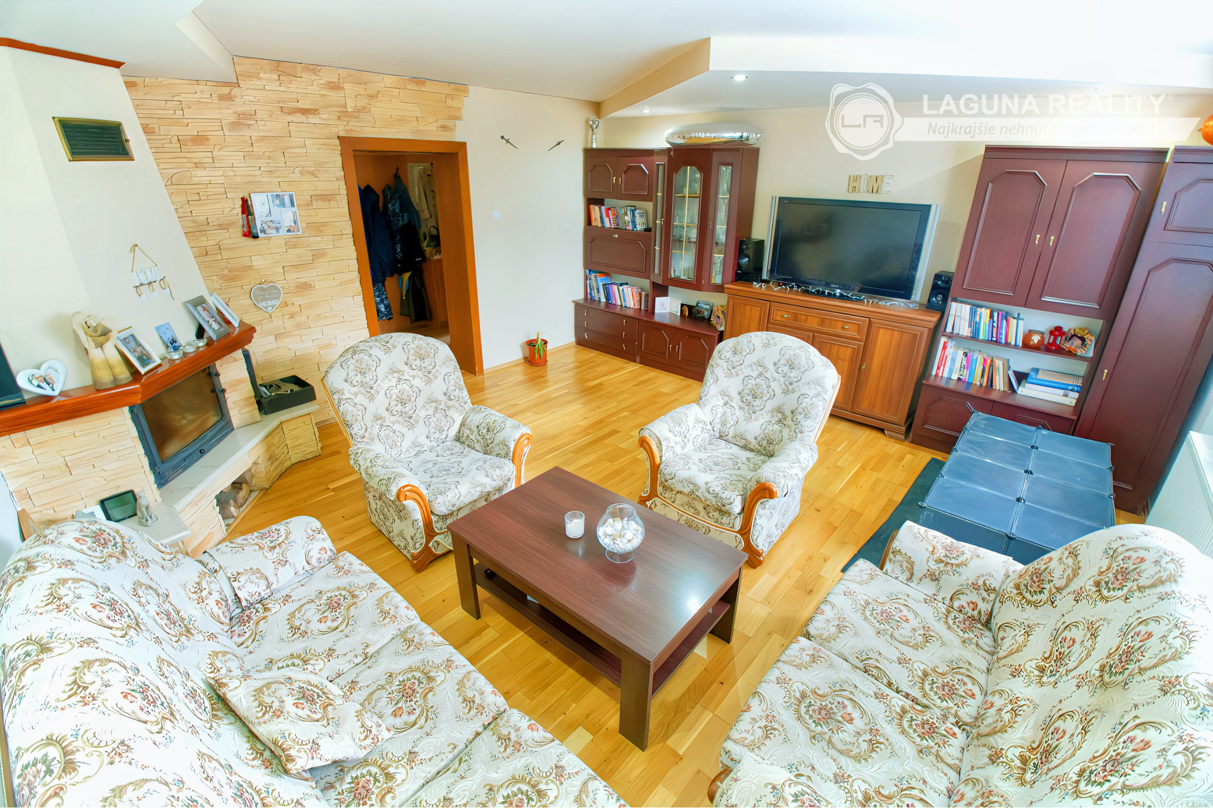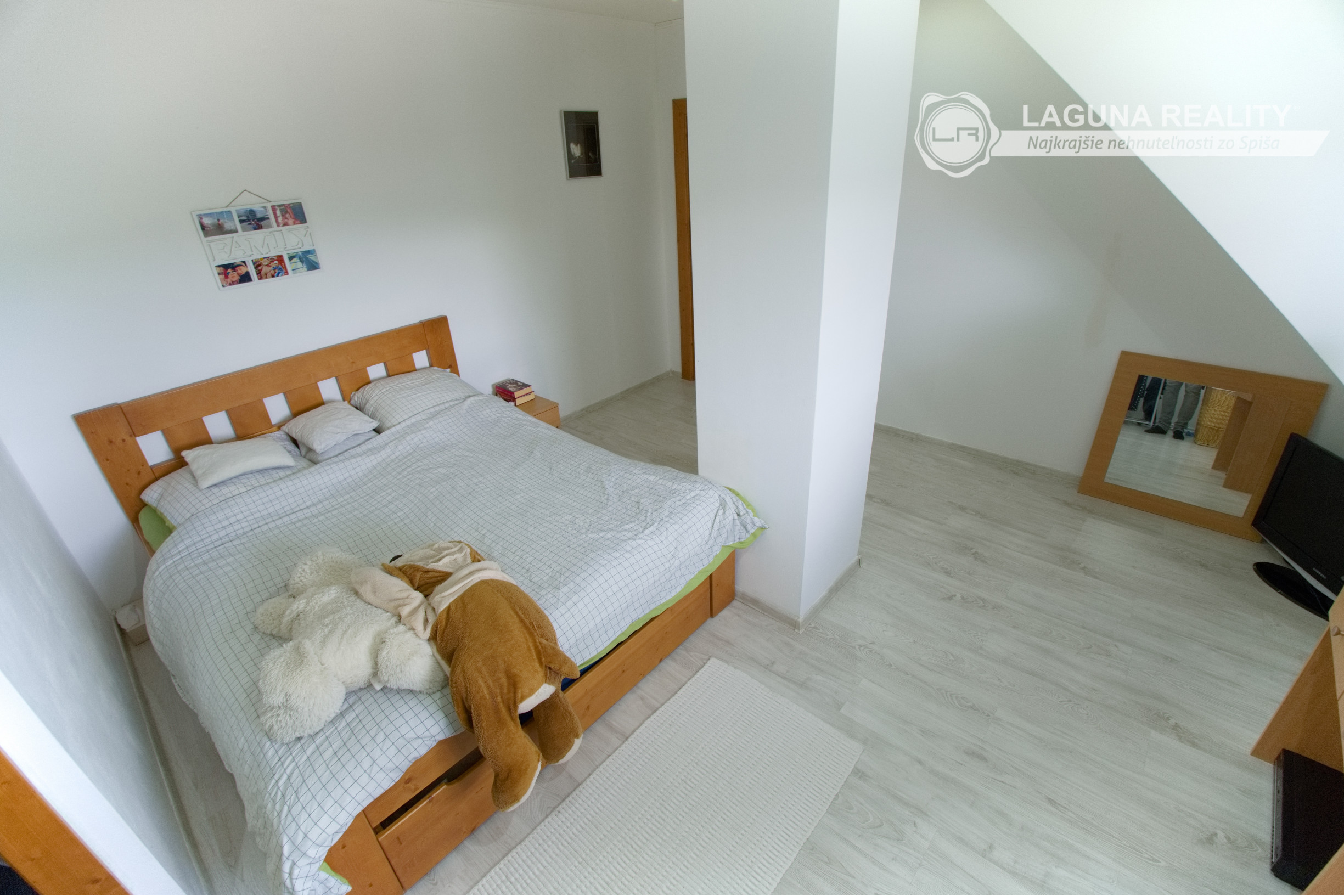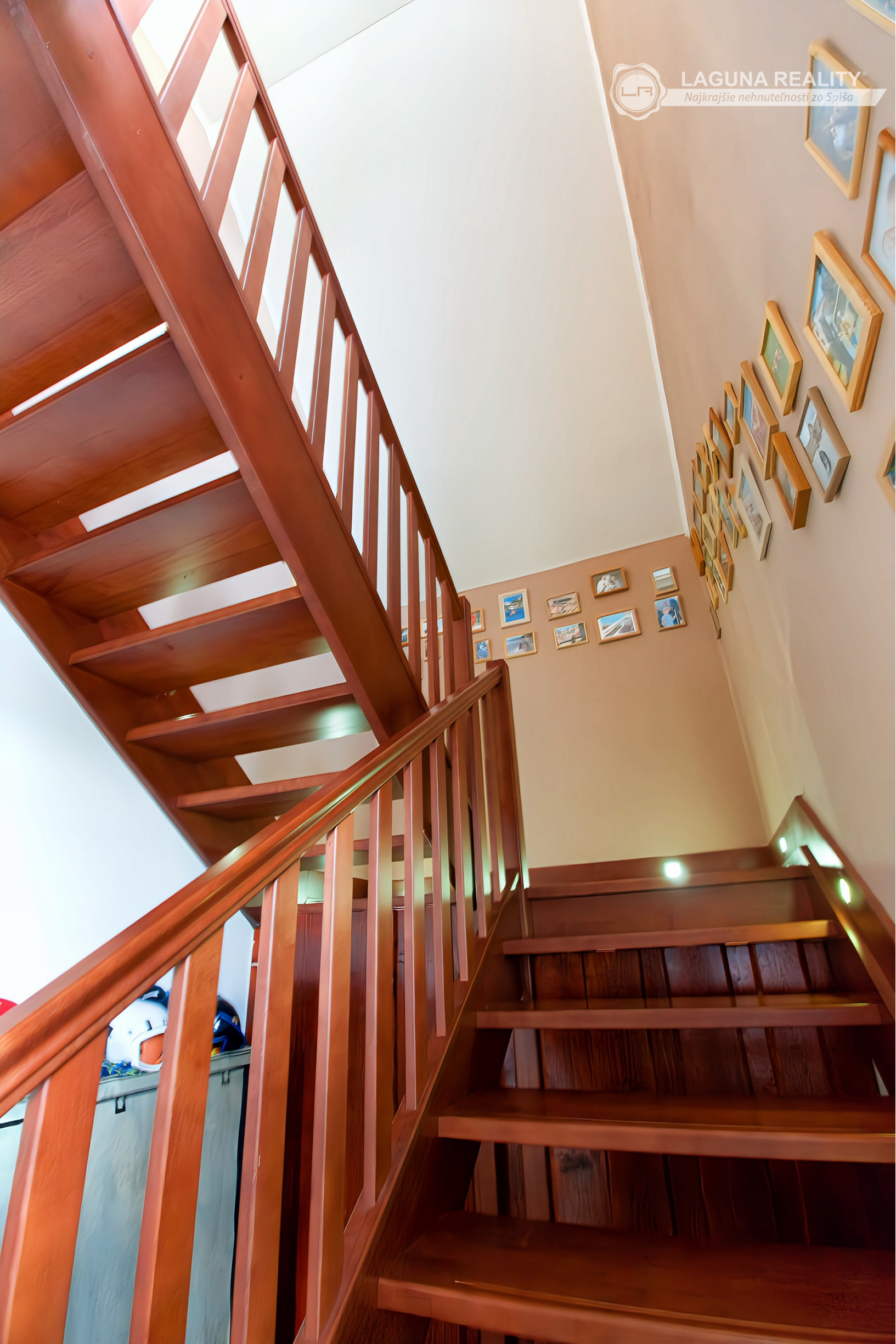 Za vstupom do domu sa nachádza zádverie so schodiskom, chodba, z ktorej je vstup do KUCHYNE, OBÝVAČKA, SPÁLNE, KÚPELNE so sprchovacím kútom a WC. Na poschodie vedie betónové schodisko, kde sa nachádza veľká obývacia izba s výstupom na balkón, spálňa so šatníkom, detská izba, KÚPEĽŇA a WC. V pivnici je technická miestnosť s plynovým kotlom, ďalšia miestnosť na skladovanie s dostatkom odkladacieho priestoru.