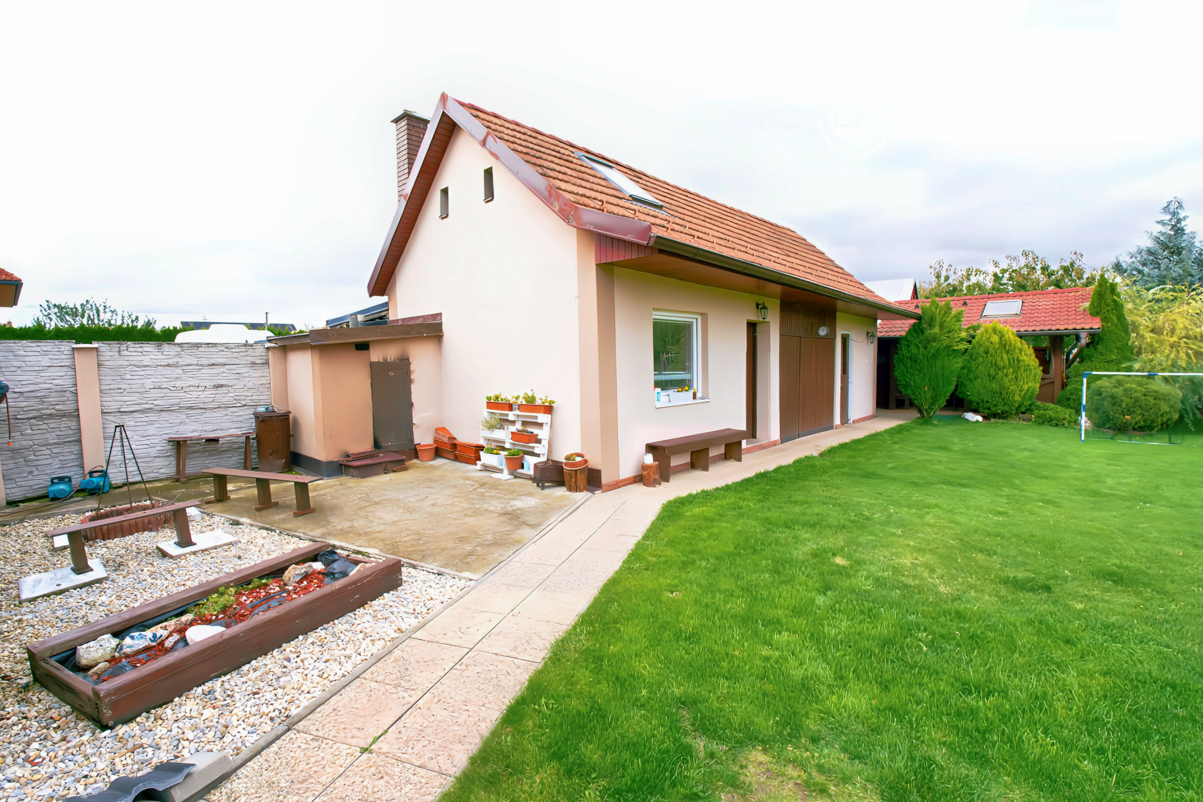 Dom je dvojpodlažný, čiastočne podpivničený, so sedlovou strechou, krytina škridľa. Dom je konštrukčne riešený ako murovaný objekt, časť dvojdomu. Zastavaná plocha domu je 114 m2, garáže 26 m2 a hospodárskej budovy 56 m2. Dom predstavuje vynikajúcu príležitosť pre POKOJNÉ RODINNÉ BÝVANIE neďaleko mesta. Svojou veľkosťou a dispozíciou môže výborne vyhovovať potrebám 4-5 člennej rodiny, so zabezpečením jej takmer všetkých požiadaviek - garáž, dostatočne veľká rovinatá záhrada, odkladacia poloha, vonkajšie sedenie.