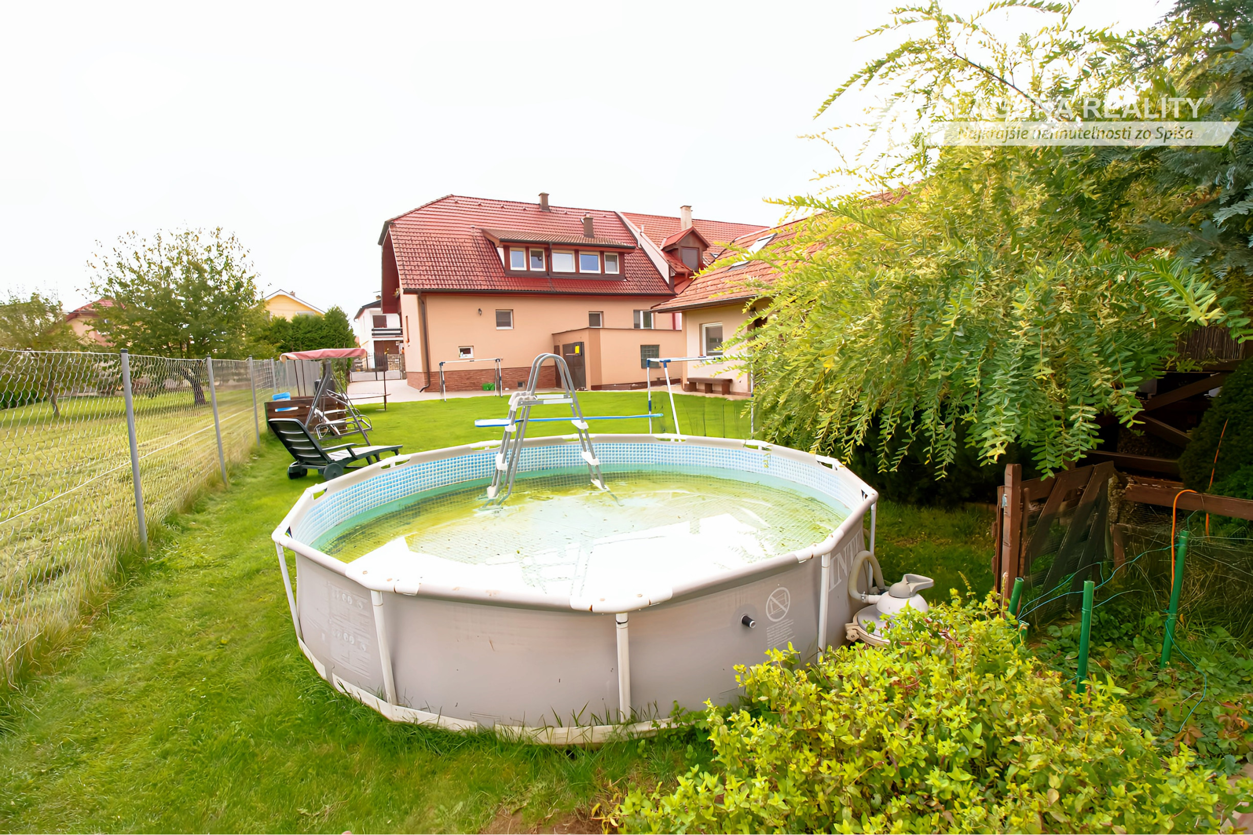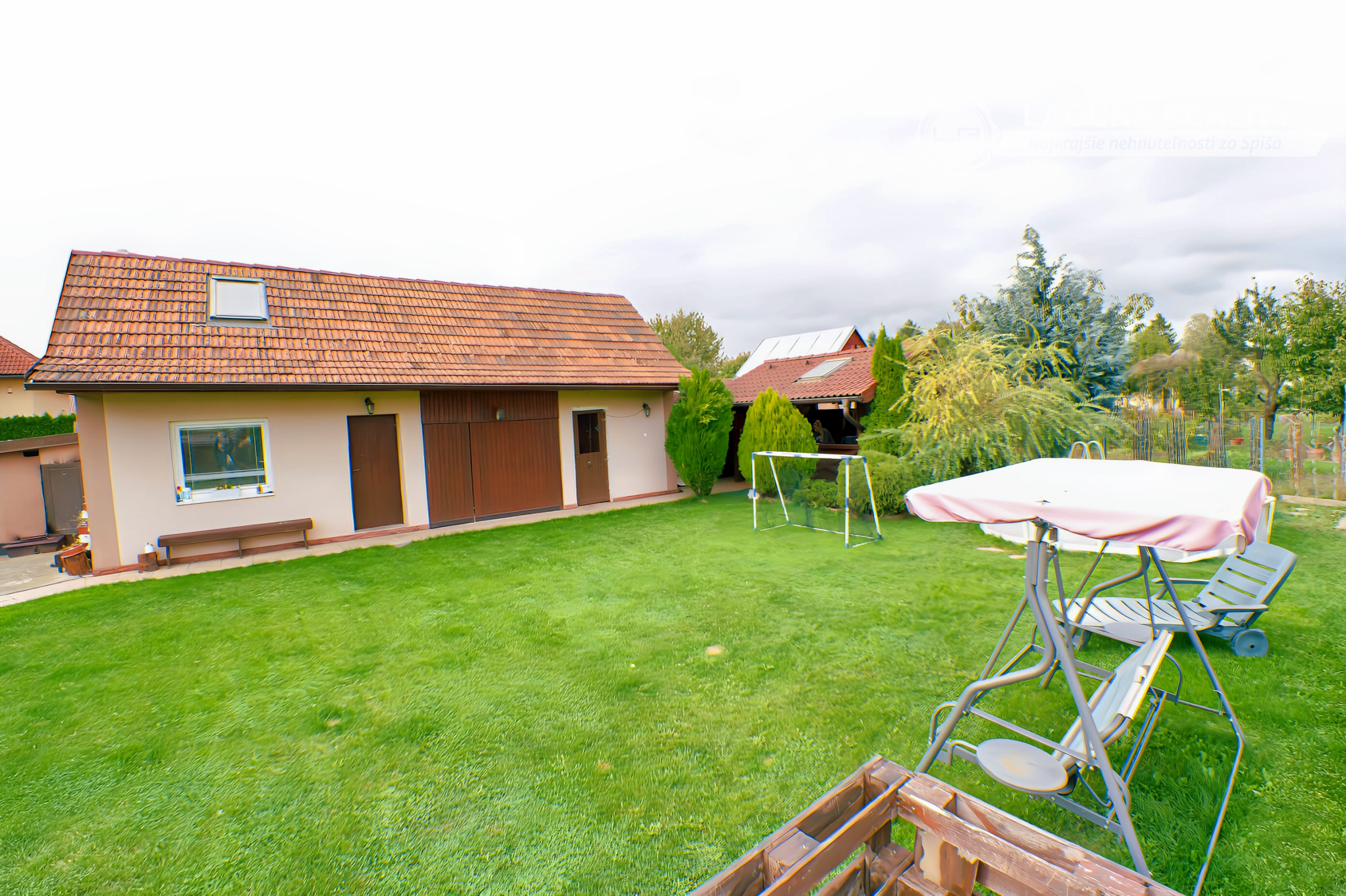 Číslo ponuky: 9191 - Ponúkame NA PREDAJ RODINNÝ DOM S GARÁŽOU, HOSPODÁRSKOU BUDOVOU, ALTÁNKOM A ROVINATOU ZÁHRADOU nachádzajúci sa v Smižanoch. Rodinný dom sa nachádza na pozemku s celkovou výmerou 654 m2. Rodinný dom je osadený na rovinatom pozemku, s orientáciou juh, pozemok a záhrada je presvetlenná, slnečná počas celého dňa. Výhodou je dostatok parkovacieho miesta, miesta na oddych ALTÁNOK ako aj na sebarealizáciu (hospodárska budova s letnou kuchyňkou, udiareň).