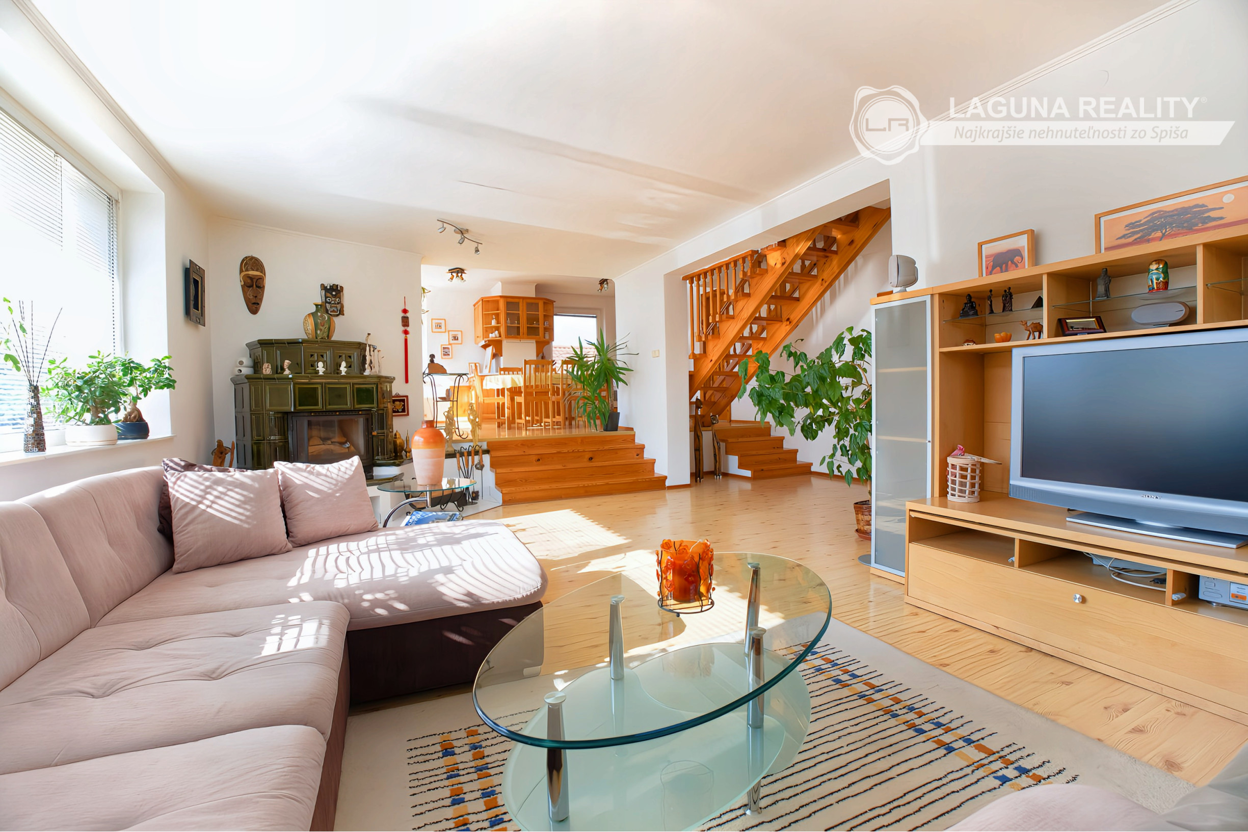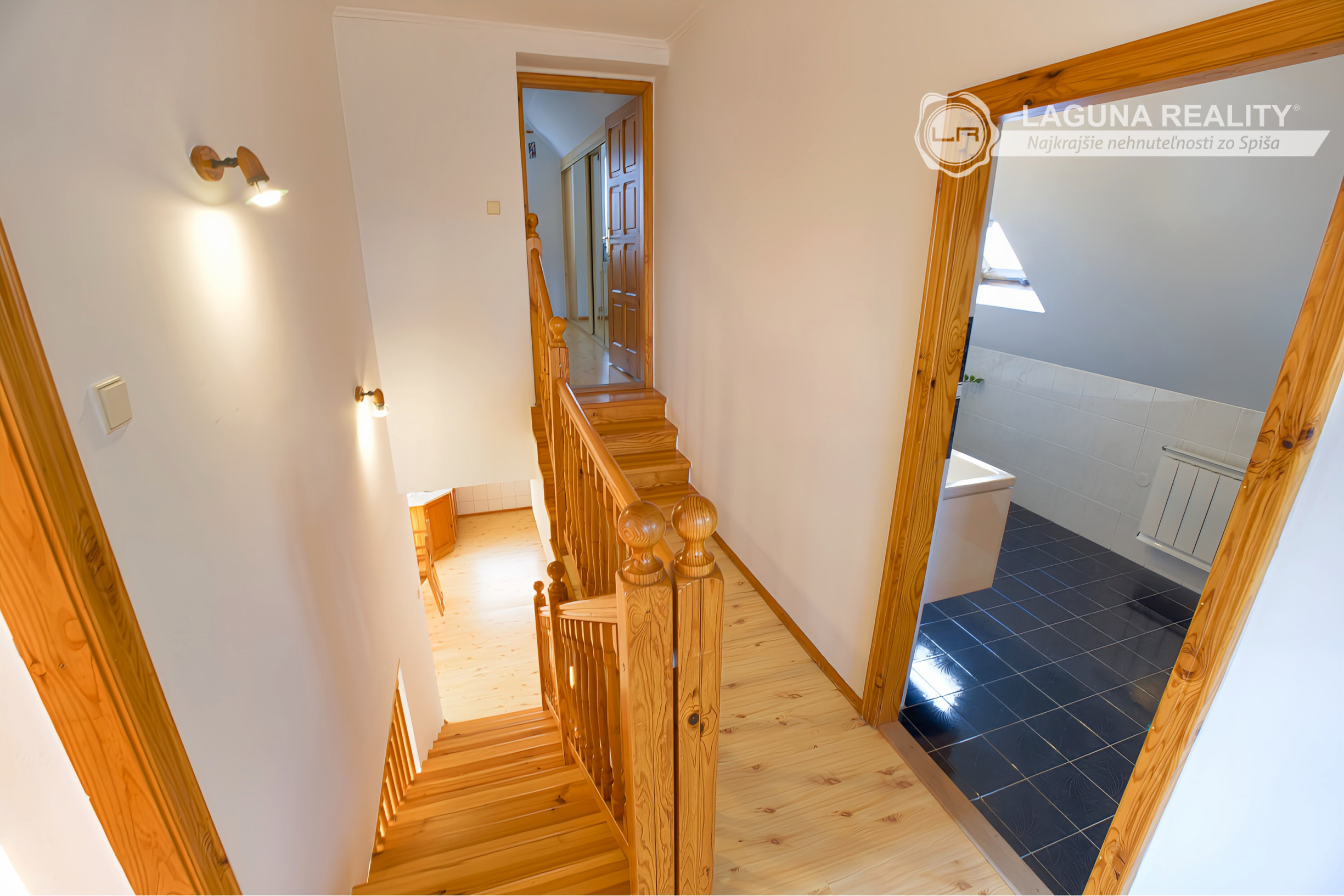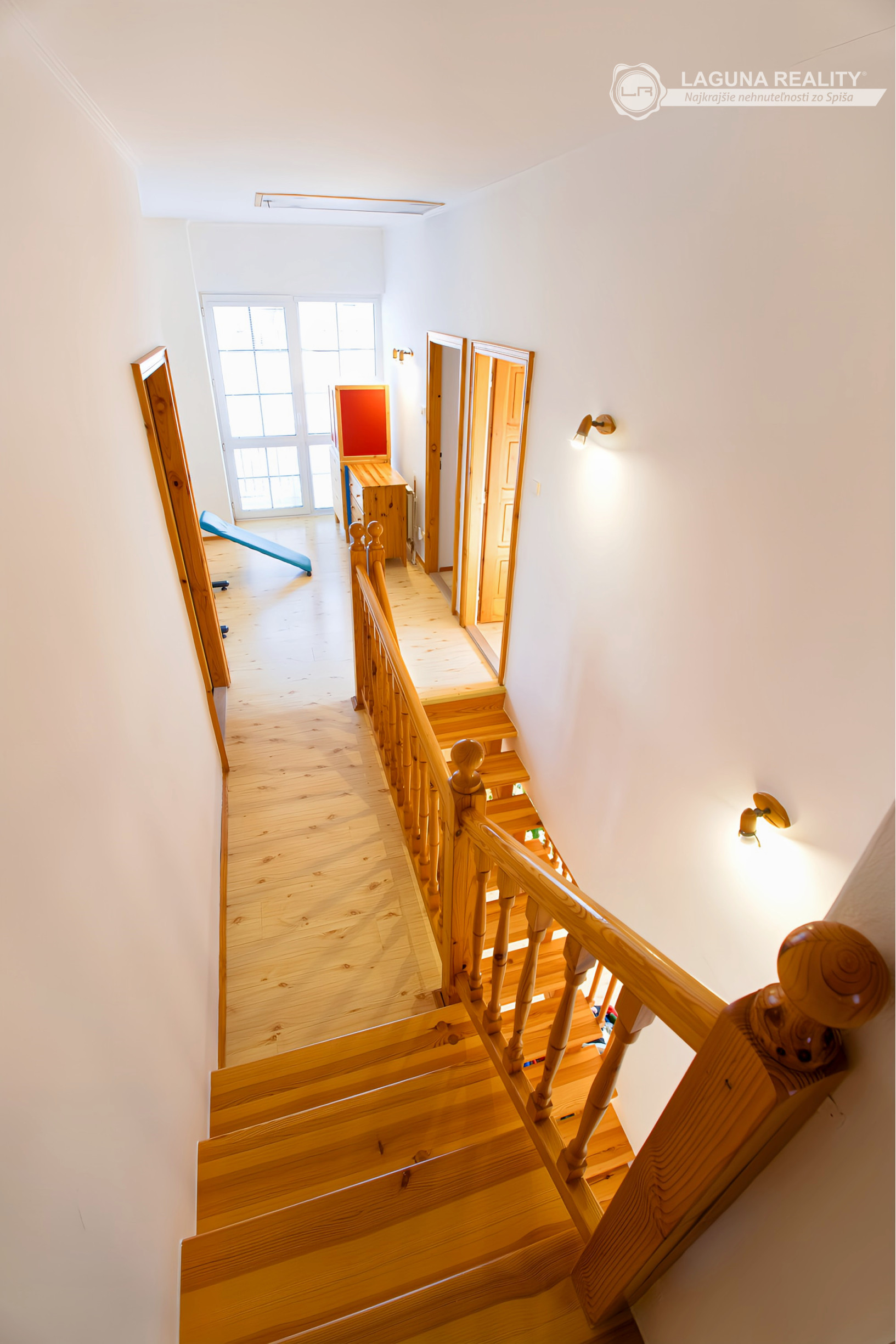 Rodinný dom bol kolaudovaný v roku 1997. Ide o samostatný dvojpodlažný dom murovanej konštrukcie, čiastočne podpivničený. Strecha je valbová, krytina BRAMAC. Rodinný dom je veľmi dobre dispozične riešený. Pri vstupe do domu je praktická predsieň. Za ňou je chodba so vstupmi do samostatného WC, technické miestnosť a VEĽKÁ KÚPELŇA SO SPRCHOVACÍM KÚTOM. Dominantou je VEĽKÝ PRESVETLENÝ PREPOJENÝ PRIESTOR OBÝVACEJ IZBY PREPOJENEJ S JEDÁLŇOU A KUCHYŇOU. Obývacia izba poskytuje dostatok miesta na pohodlné sedenie, vybavená je vkusným elegantným KACHĽOVÝM KRBOM na dotvorenie atmosféry. Kuchyňa s jedálenským sedením má výstup na terasu s vonkajším sedením, výhodou je príručná komora. Na poschodie vedie drevené schodisko, kde sa nachádza chodba s dostatkom úložného priestoru, dve detské izby, kúpeľňa s vaňou a veľká spálňa s výstupom na balkón. V suteréne domu je dostatok miesta na skladovanie, využiteľný prípadne na saunu.