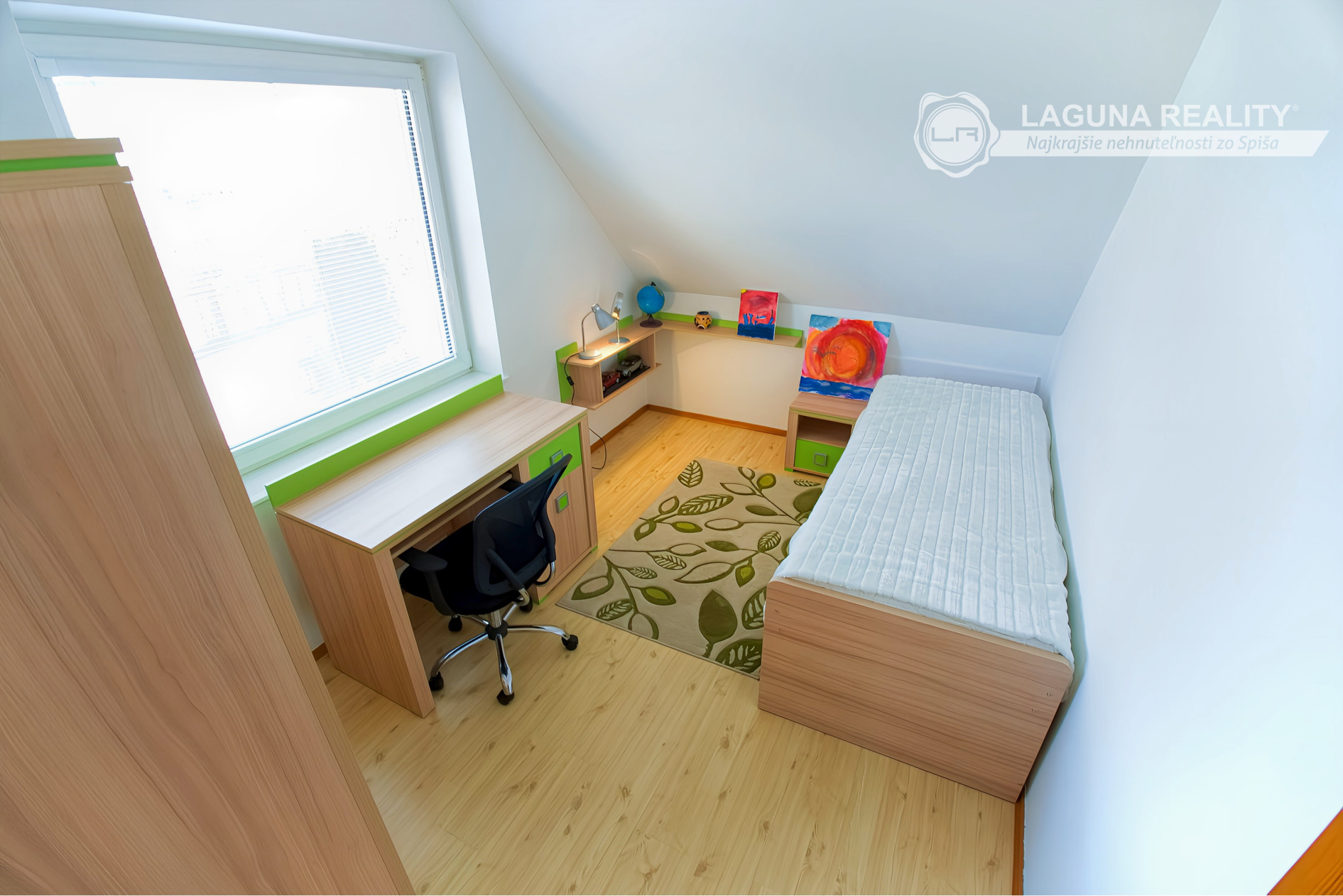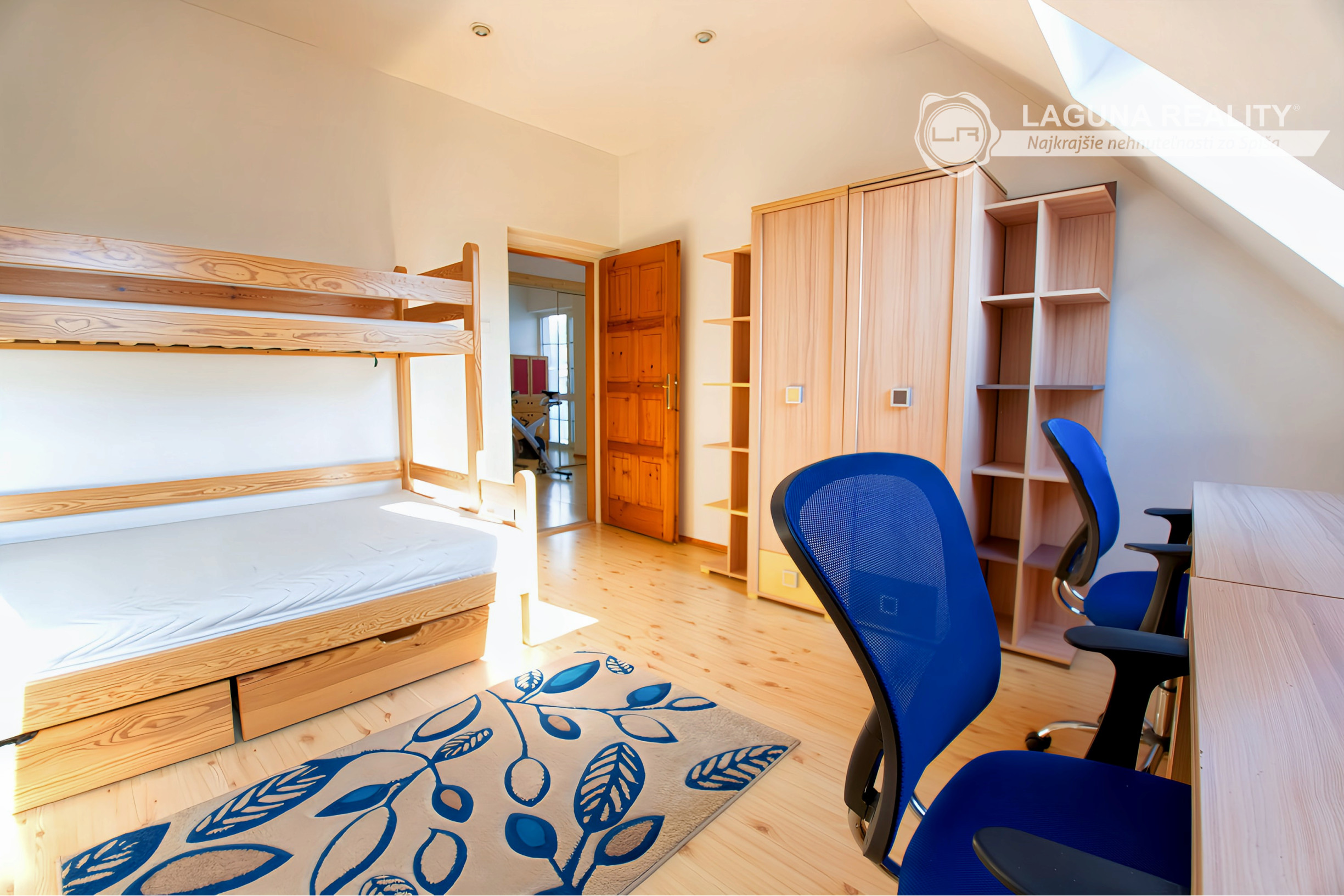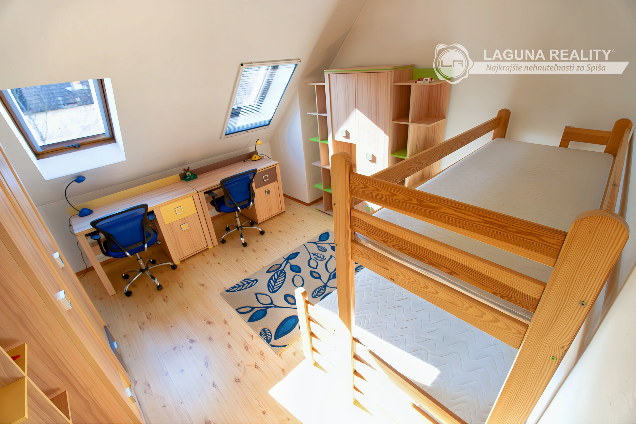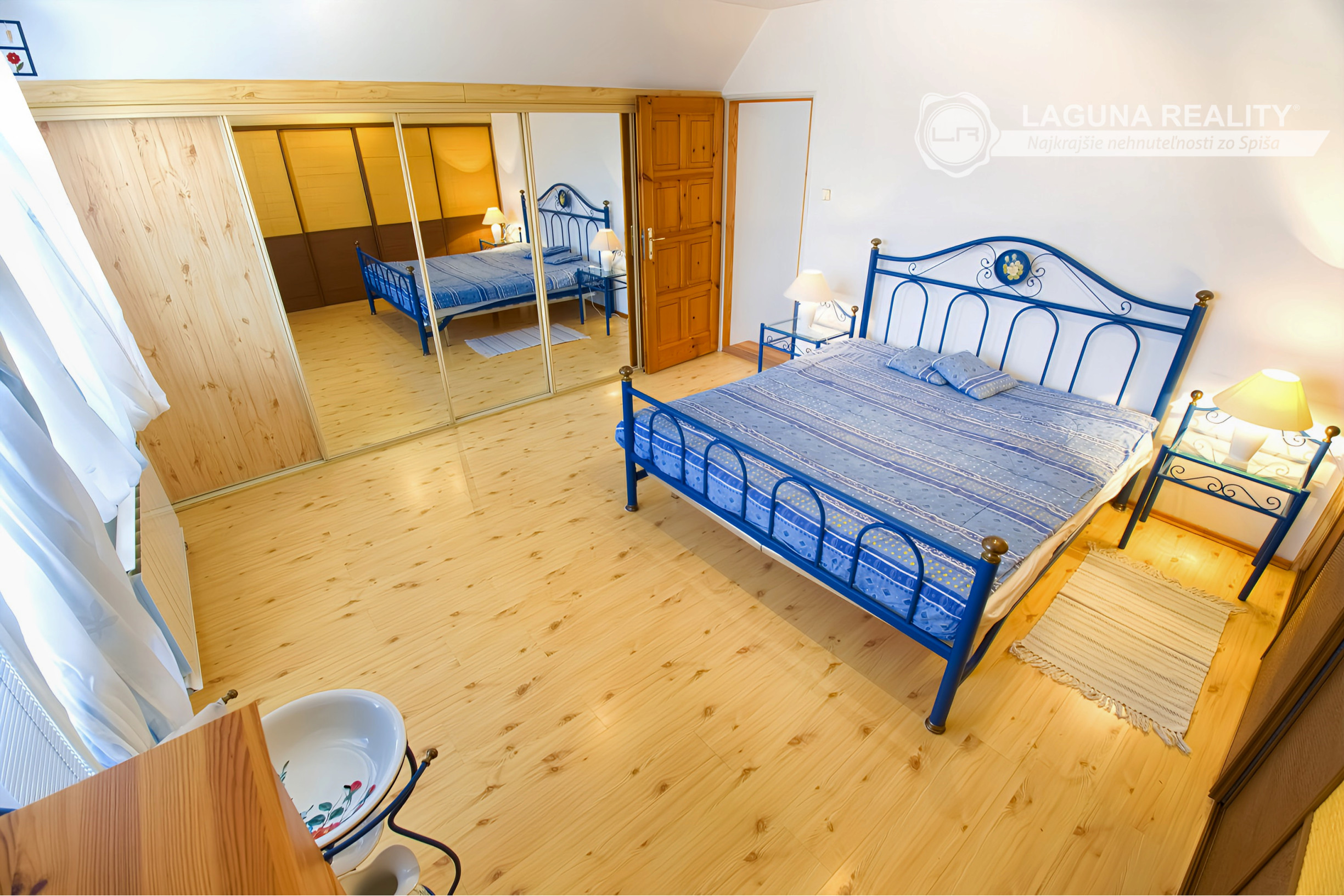 Rodinný dom bol kolaudovaný v roku 1997. Ide o samostatný dvojpodlažný dom murovanej konštrukcie, čiastočne podpivničený. Strecha je valbová, krytina BRAMAC. Rodinný dom je veľmi dobre dispozične riešený. Pri vstupe do domu je praktická predsieň. Za ňou je chodba so vstupmi do samostatného WC, technické miestnosť a VEĽKÁ KÚPELŇA SO SPRCHOVACÍM KÚTOM. Dominantou je VEĽKÝ PRESVETLENÝ PREPOJENÝ PRIESTOR OBÝVACEJ IZBY PREPOJENEJ S JEDÁLŇOU A KUCHYŇOU. Obývacia izba poskytuje dostatok miesta na pohodlné sedenie, vybavená je vkusným elegantným KACHĽOVÝM KRBOM na dotvorenie atmosféry. Kuchyňa s jedálenským sedením má výstup na terasu s vonkajším sedením, výhodou je príručná komora. Na poschodie vedie drevené schodisko, kde sa nachádza chodba s dostatkom úložného priestoru, dve detské izby, kúpeľňa s vaňou a veľká spálňa s výstupom na balkón. V suteréne domu je dostatok miesta na skladovanie, využiteľný prípadne na saunu.