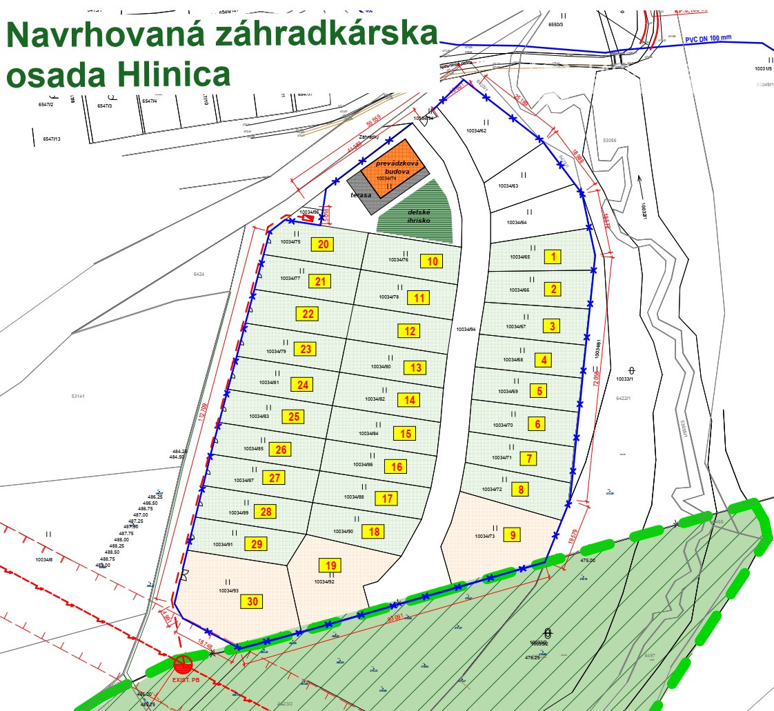 Číslo ponuky: 9063 - ZOSTÁVAJÚ POSLEDNÉ DVE Z 30 ZÁHRADOK v rámci úplne NOVE ZÁHRADKÁRSKEJ OSADY na území mesta Spišská Nová Ves, v lokalite pri Červenom jarku. Osada aktuálne už v realizácii, bola naprojektovaná tak, aby splnila všetky potreby záhradkárov a nadšencov oddychu a rekreácie v blízkosti mesta na vlastnom pozemku. Záhradky s výmerou od 302 do 326 m2 budú vybavené NAPOJENÍM NA ELEKTRINU, VODU (prípojky na hranici pozemku), z 3 strán oplotené pletivom. Celý areál bude ZVONKU OPLOTENÝ, VYBAVENÝ KAMEROVÝM SYSTÉMOM SO VSTUPOM NA ČIP.