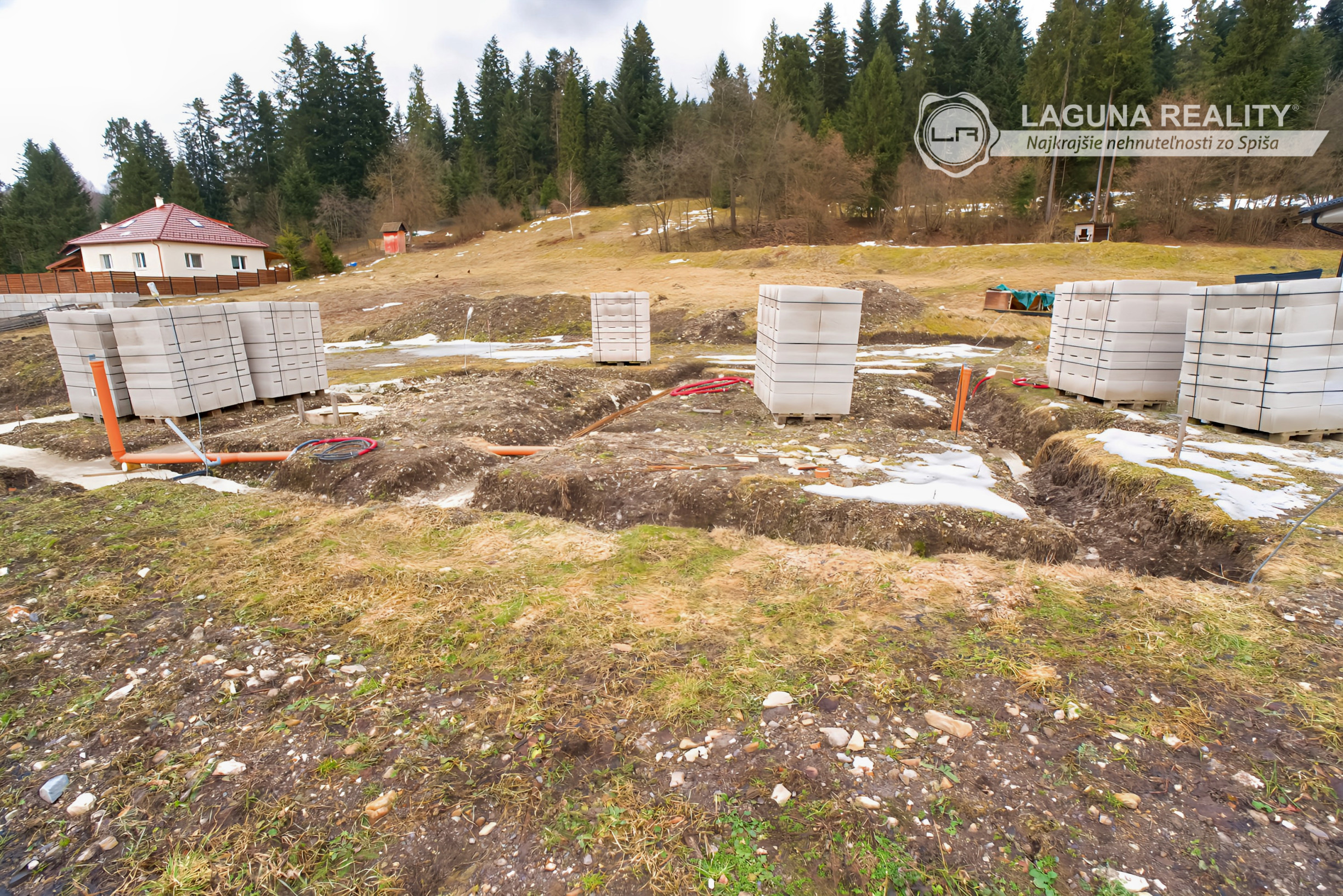 Číslo ponuky: 9145 - Ponúkame EXKLUZÍVNE NA PREDAJ STAVEBNÝ POZEMOK PRE RODINNÝ DOM - BUNGALOV SO STAVEBNÝM POVOLENÍM, ZAČATOU SPODNOU STAVBOU A STAVEBNÝM MATERIÁLOM nachádzajúci sa v pokojnej TICHEJ LOKALITE POD LESOM v Spišskej Novej Vsi. Pozemok s celkovou výmerou 445 m2 je prístupný z verejnej komunikácie. Osadenie domu je projektované s výhodnou orientáciou VÝCHOD - ZÁPAD, pričom výstup z kuchyne NA TERASU je orientované smerom na juh k lesu.