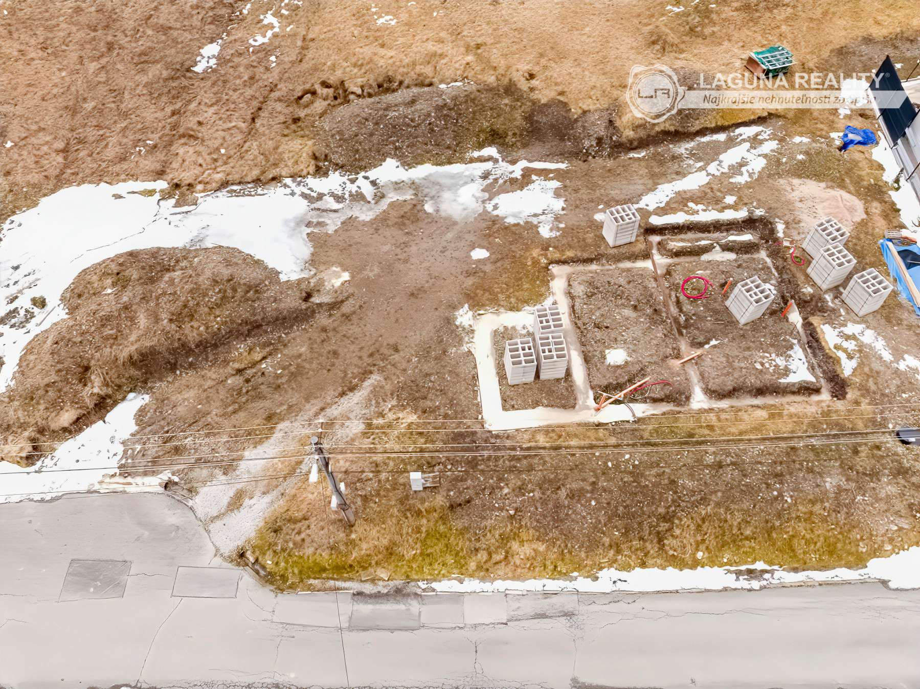 - realizované stavebné práce: terénne úpravy (skrývka), výkopy základové pásy, príprava vodorovné rozvody vodovod a kanalizácia,