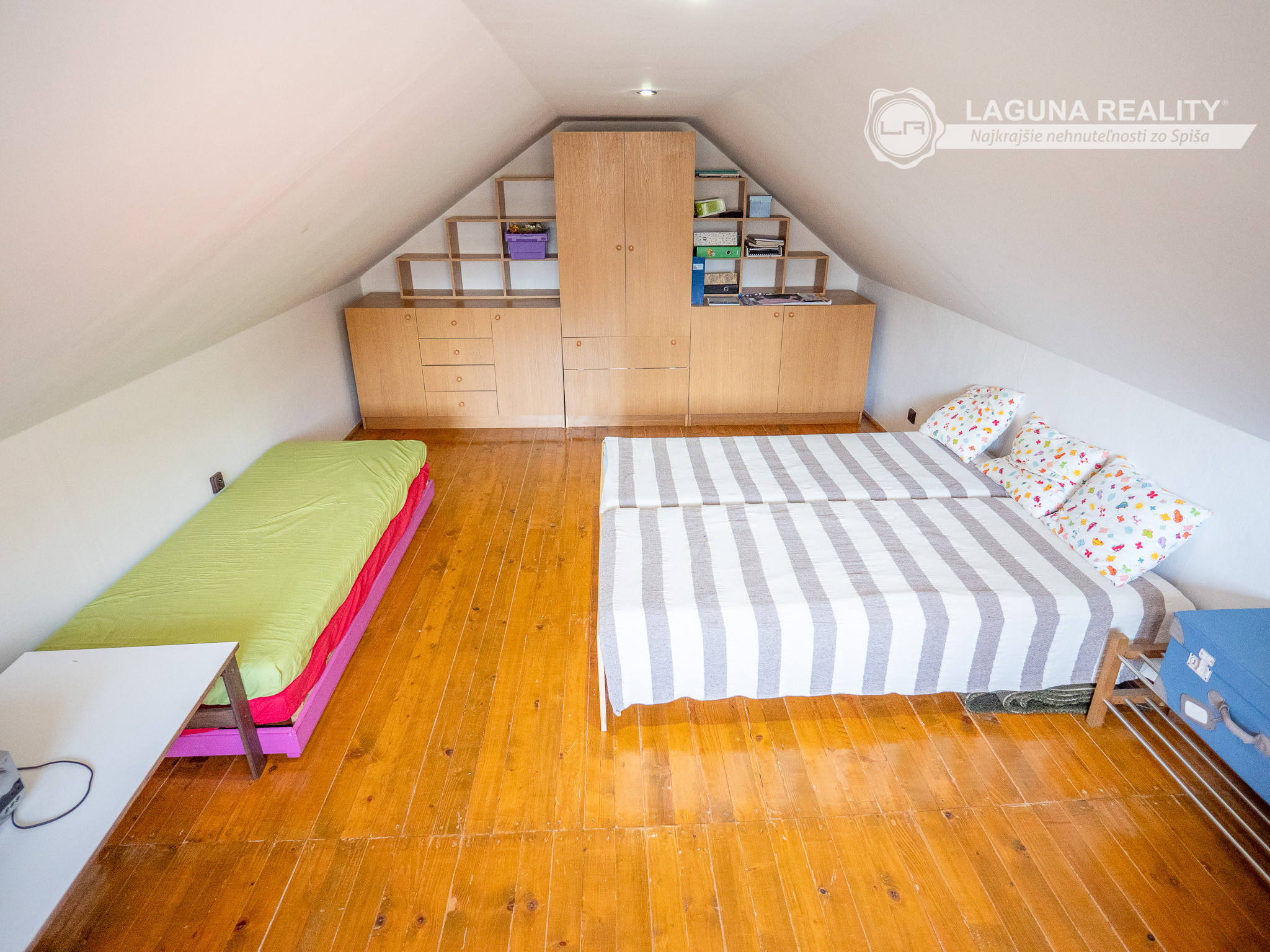 3 detské / hosťovské izby + ďalšia podkrovná izba so šikmými stropmi, ideálna pre mladšie generácie