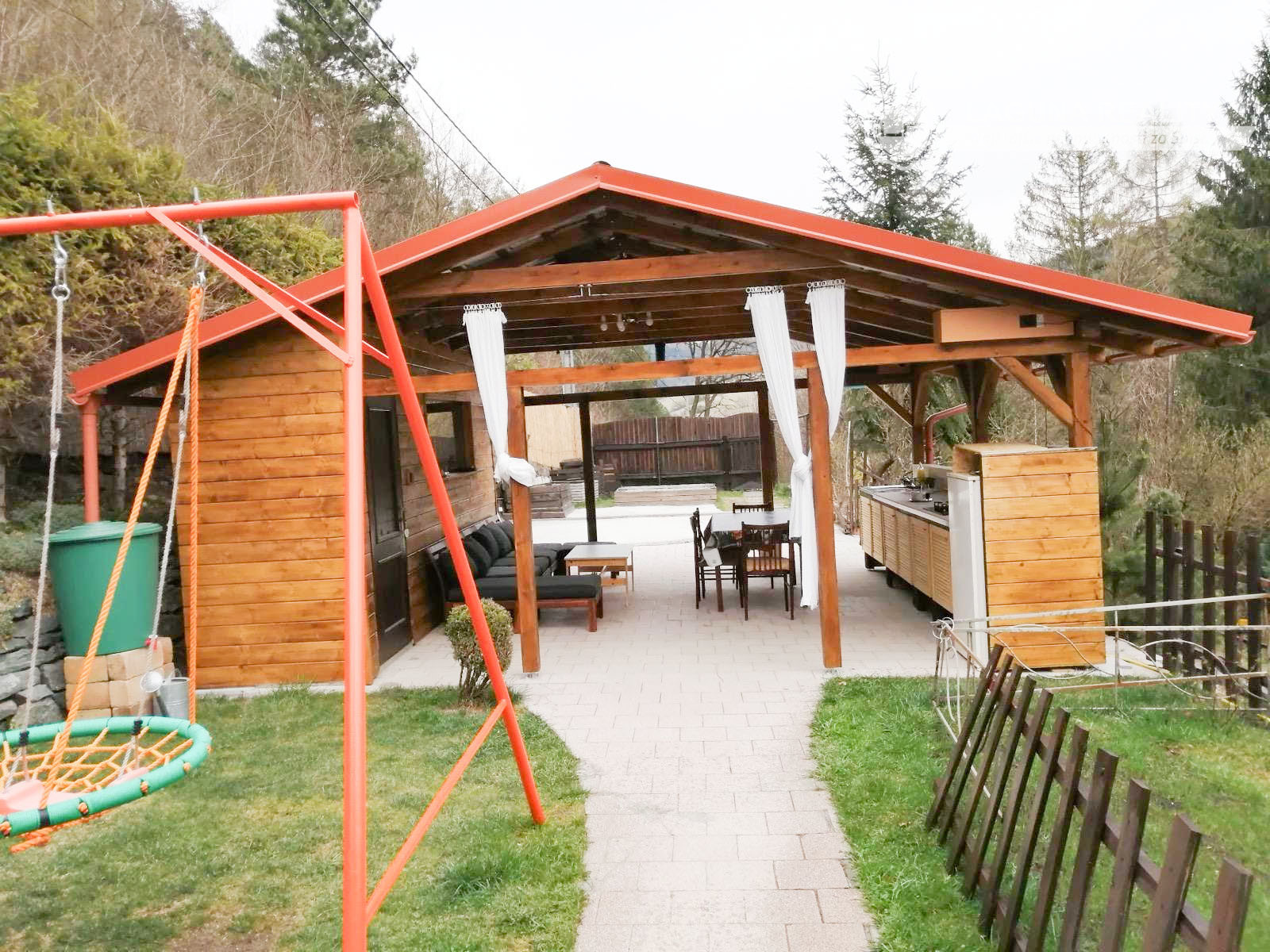 Dom stojí na parcele o veľkosti 793 m2 s upravenou záhradou, altánkom s grilovacím kútom – ideálnym miestom na rodinné stretnutia v letných mesiacoch.