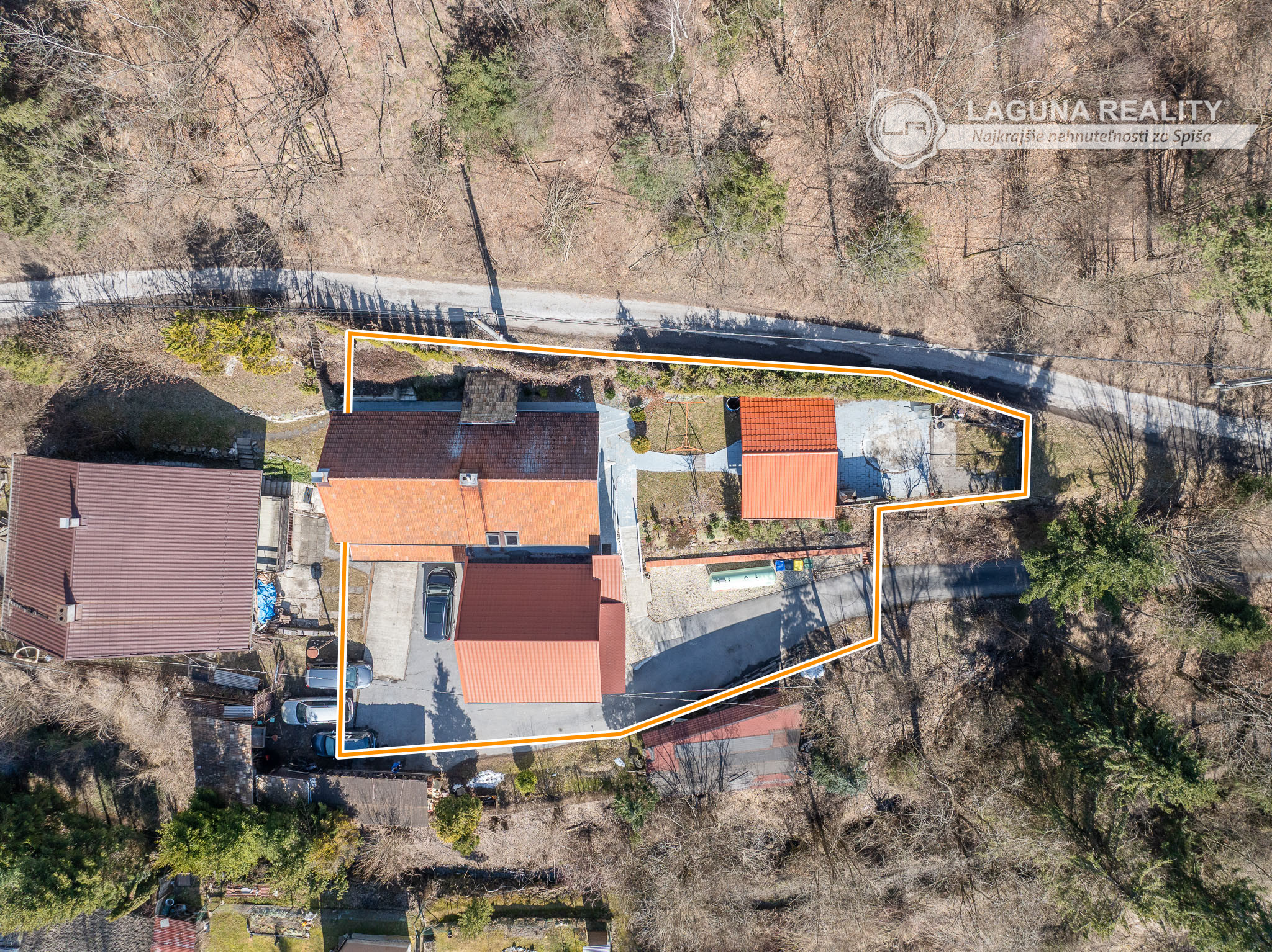 Súčasťou nehnuteľnosti sú i 3 garáže a ďalšie parkovacie plochy.