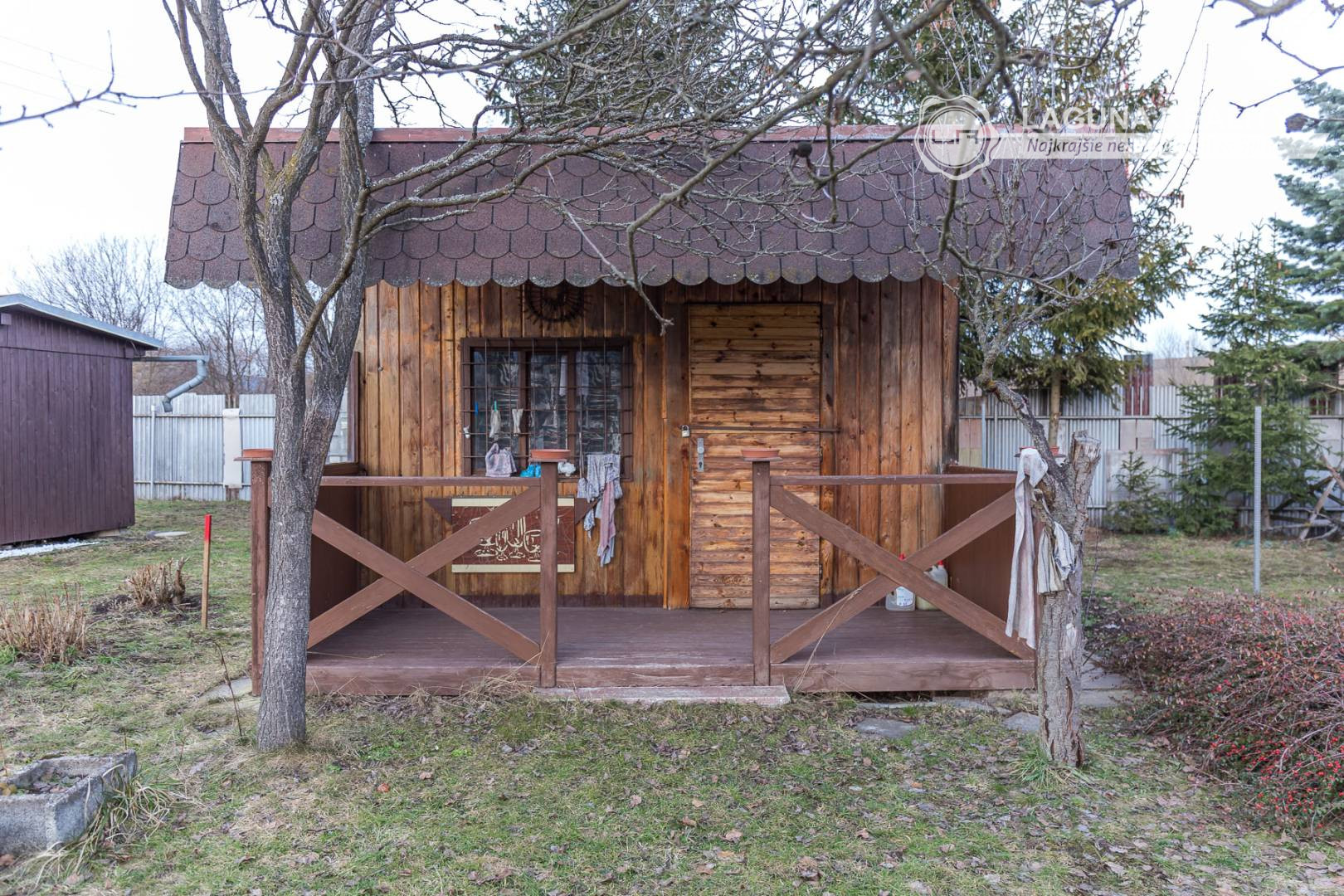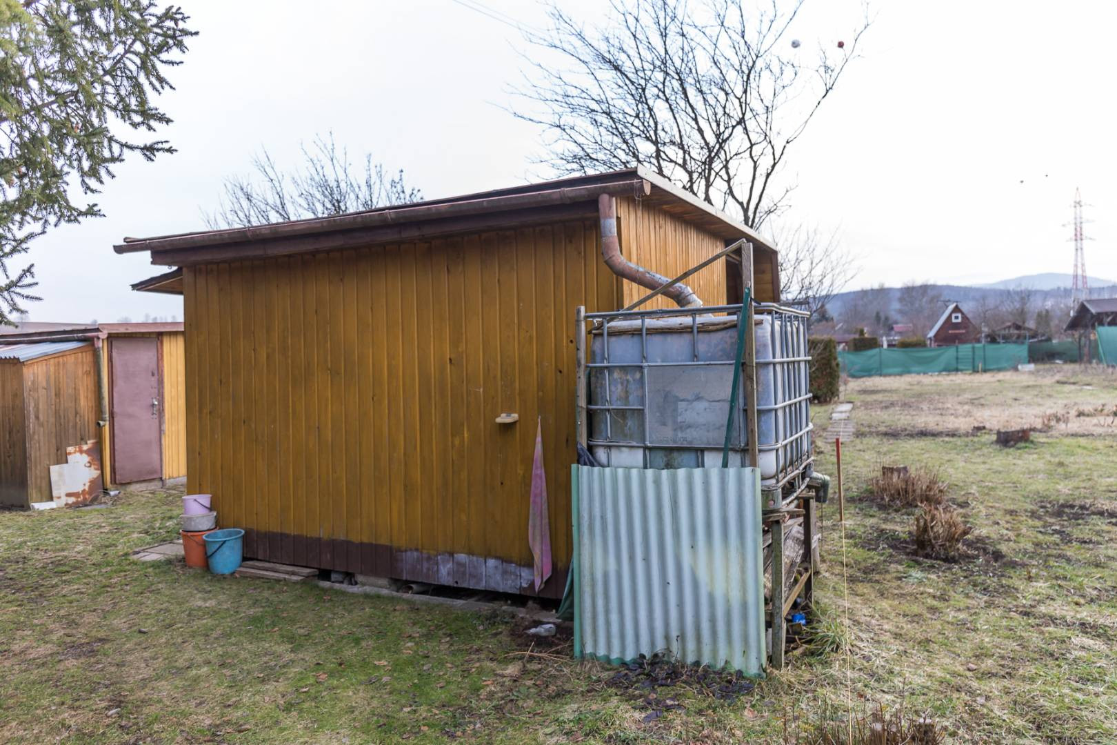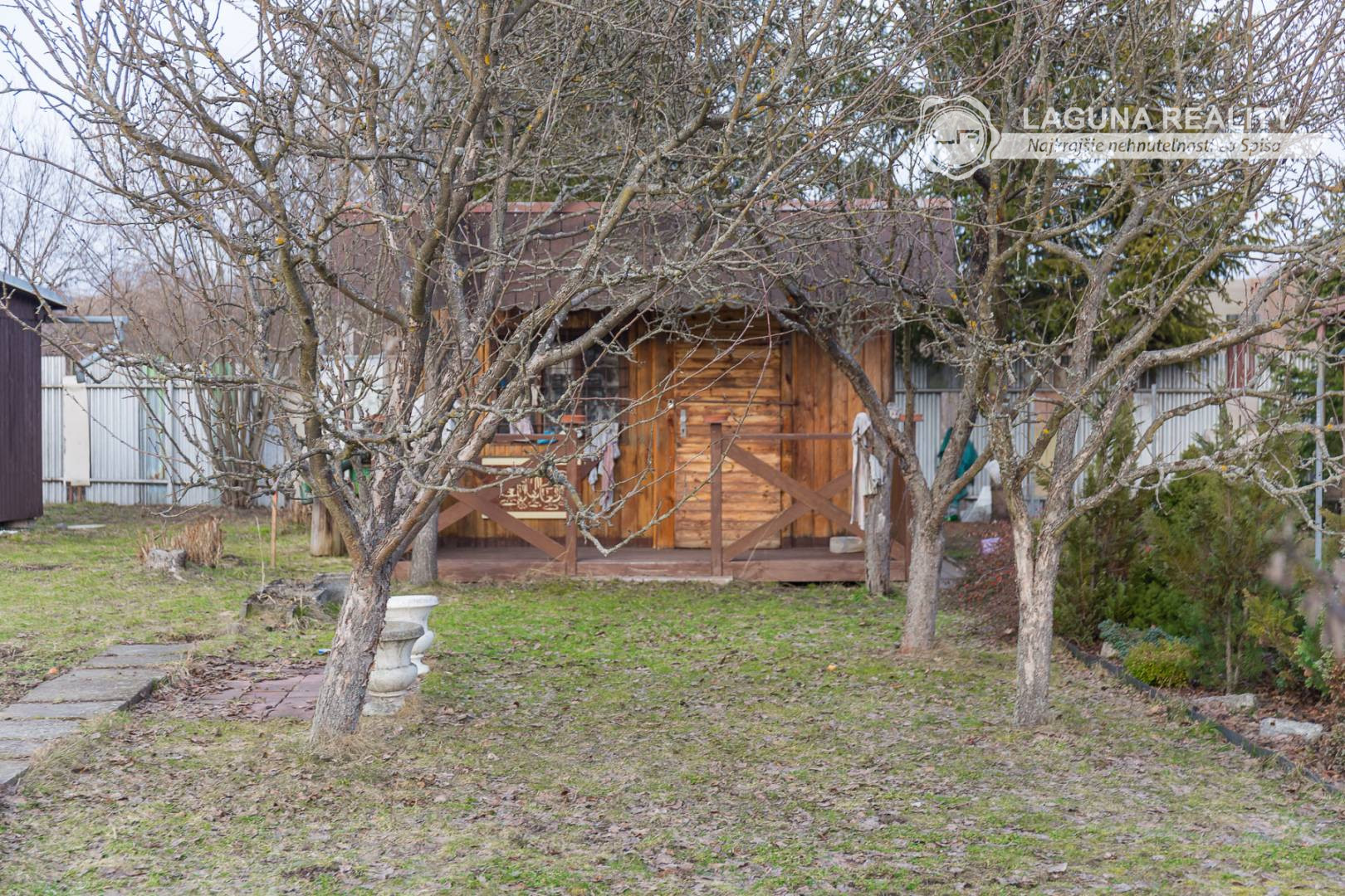 Súčasťou záhrady je aj drevená chatka bez betónového základu vhodná na uskladňovanie záhradných potrieb a náradia. Chatka nemá napojenie na elektrinu, vodu. Na pozemku sa v jednej časti nachádzajú ovocné stromy, druhá polovica je využívaná na pestovanie plodín. Lokalita ponúka príjemné prostredie pre oddych a relax.