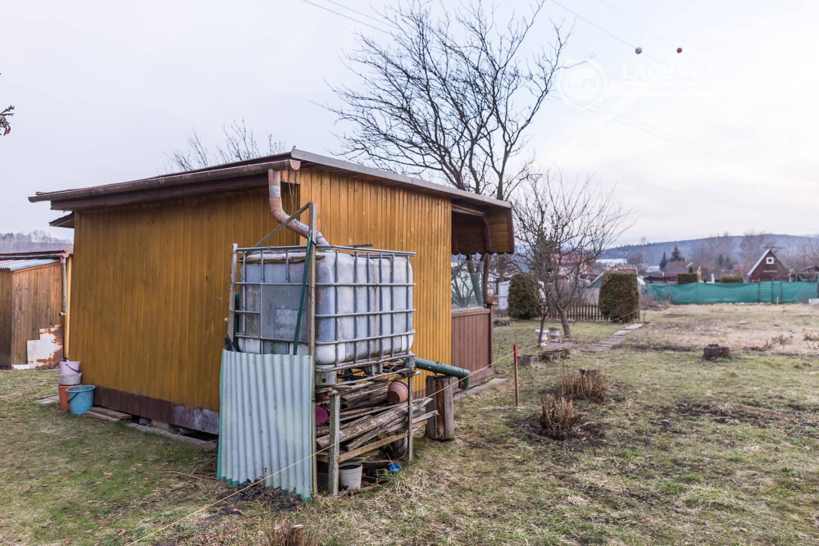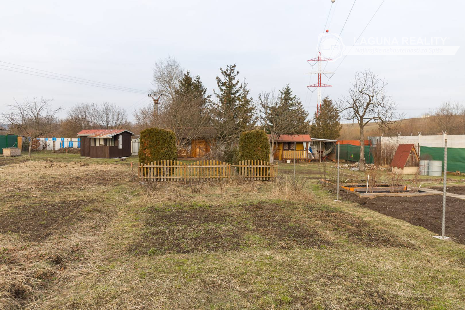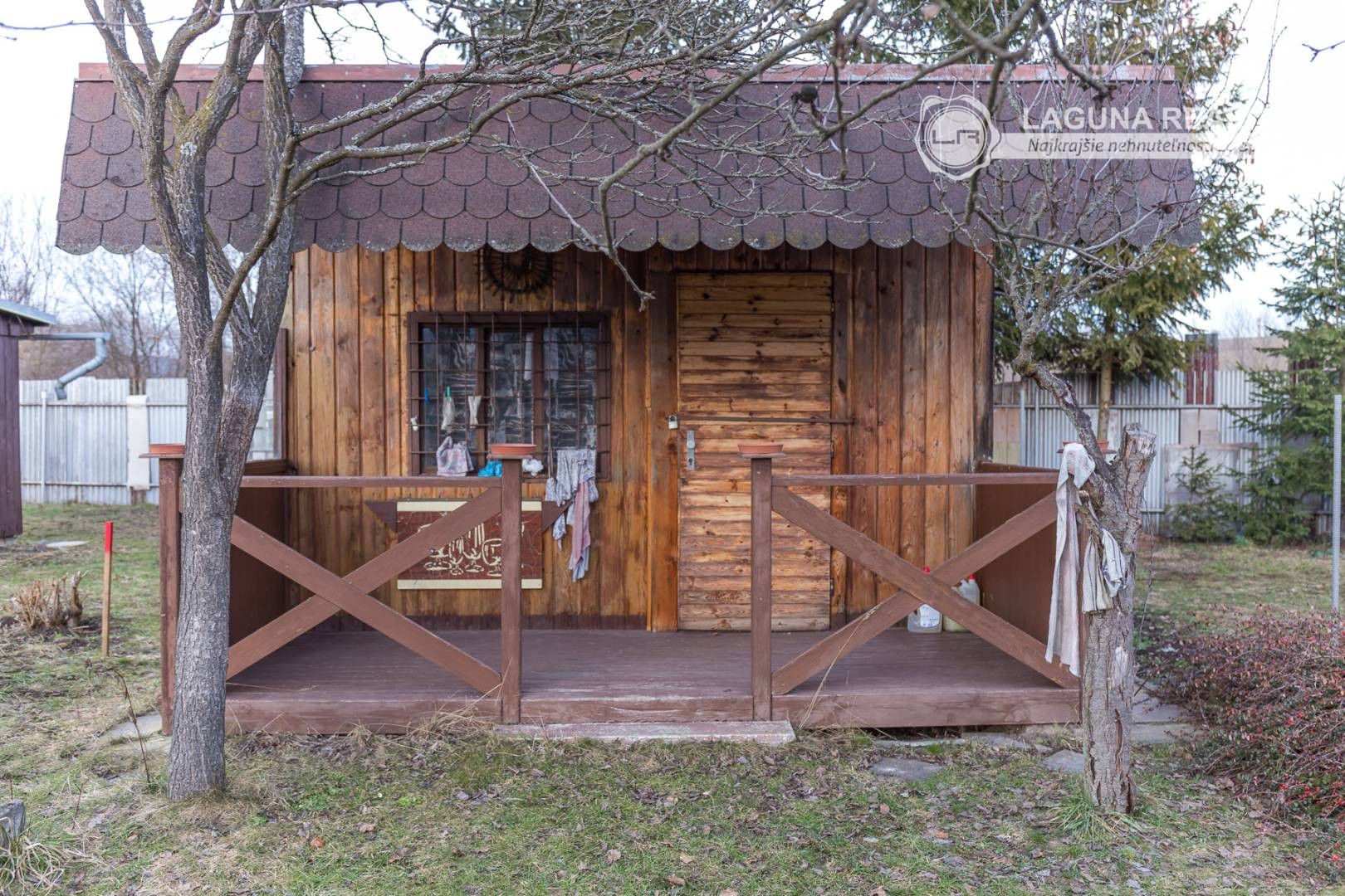 Súčasťou záhrady je aj drevená chatka bez betónového základu vhodná na uskladňovanie záhradných potrieb a náradia. Chatka nemá napojenie na elektrinu, vodu. Na pozemku sa v jednej časti nachádzajú ovocné stromy, druhá polovica je využívaná na pestovanie plodín. Lokalita ponúka príjemné prostredie pre oddych a relax.