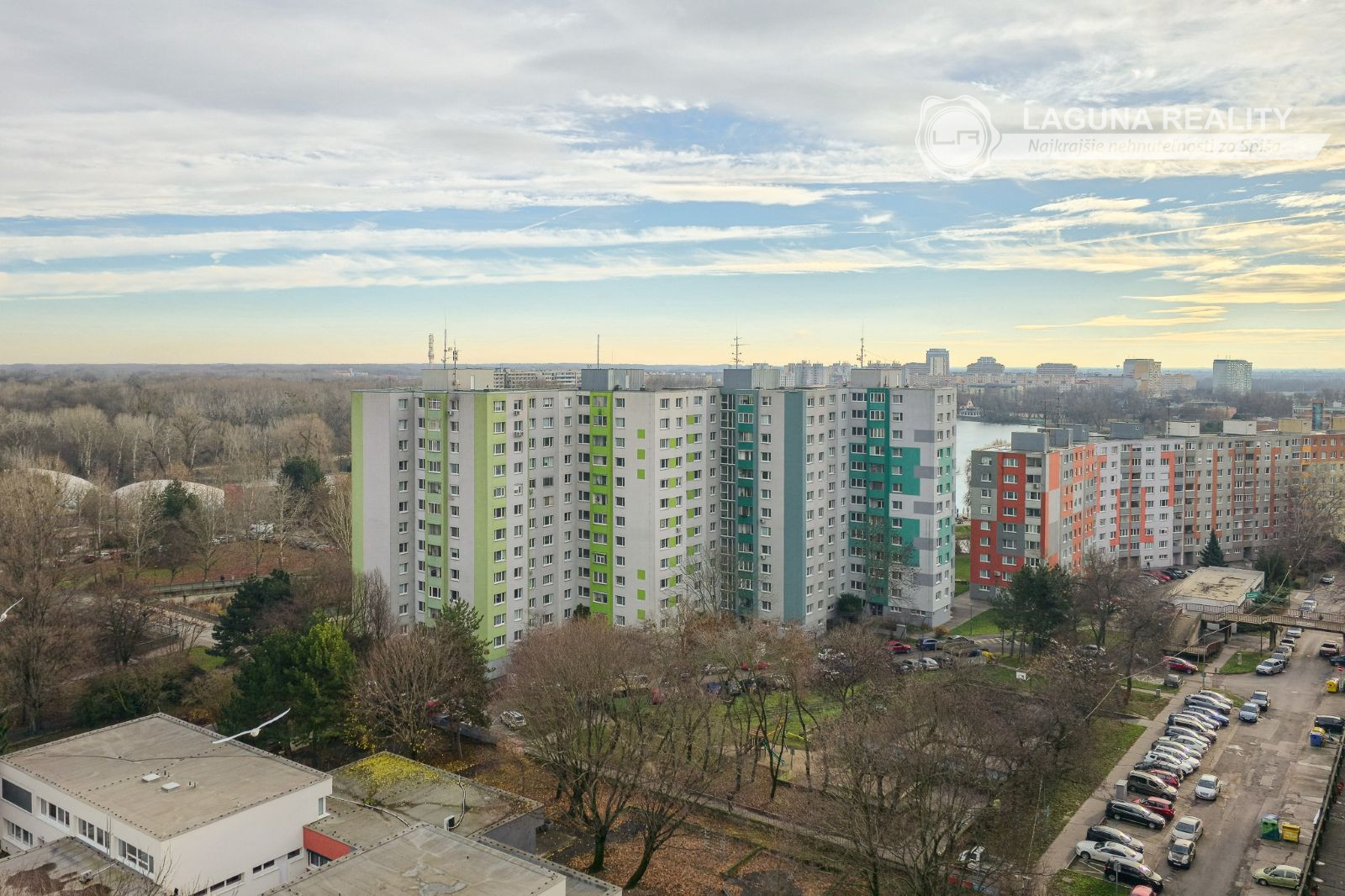 Byt sa nachádza na 10. poschodí z 12 v nedávno zrekonštruovanom bytovom dome s dvomi výťahmi, v pokojnej lokalite s výbornou dostupnosťou do centra mesta. Priamo pred bytovým domom sa nachádza zastávka električky, pričom na Šafárikovo námestie sa dostanete len za 12 minút.