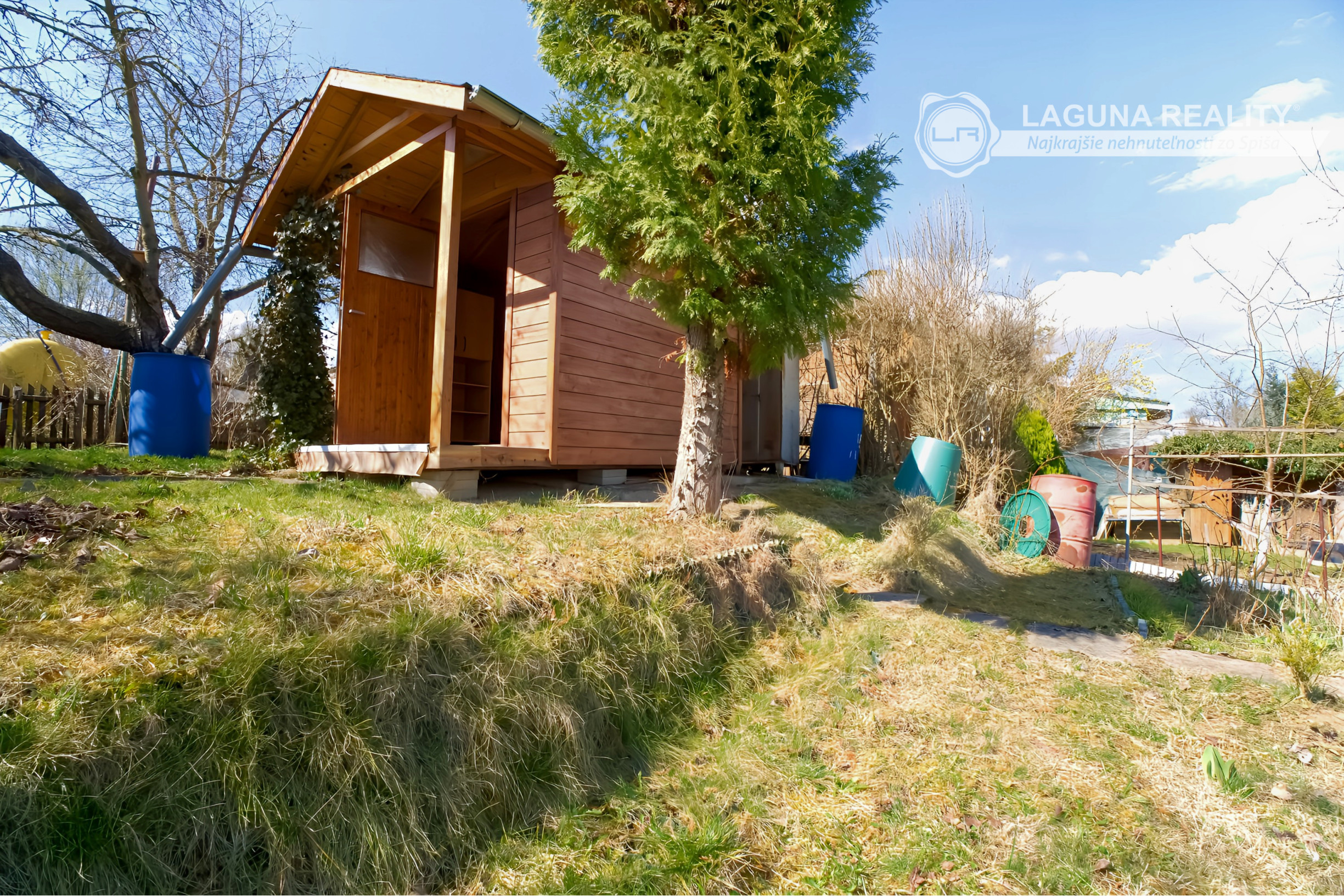 Súčasťou záhrady je aj drevená chatka vhodná na posedenie, či uskladňovanie záhradných potrieb a náradia. MÁ NAPOJENIE NA ELEKTRINU. Voda je neďaleko (cca 5 metrov od hranice pozemku) zo spoločného zdroja záhradkarskej osady. Na pozemku sa nachádzajú ovocné stromy, druhá polovica je využívaná na pestovanie plodín. Lokalita ponúka príjemné prostredie pre oddych a relax. K dispozícii ihneď.